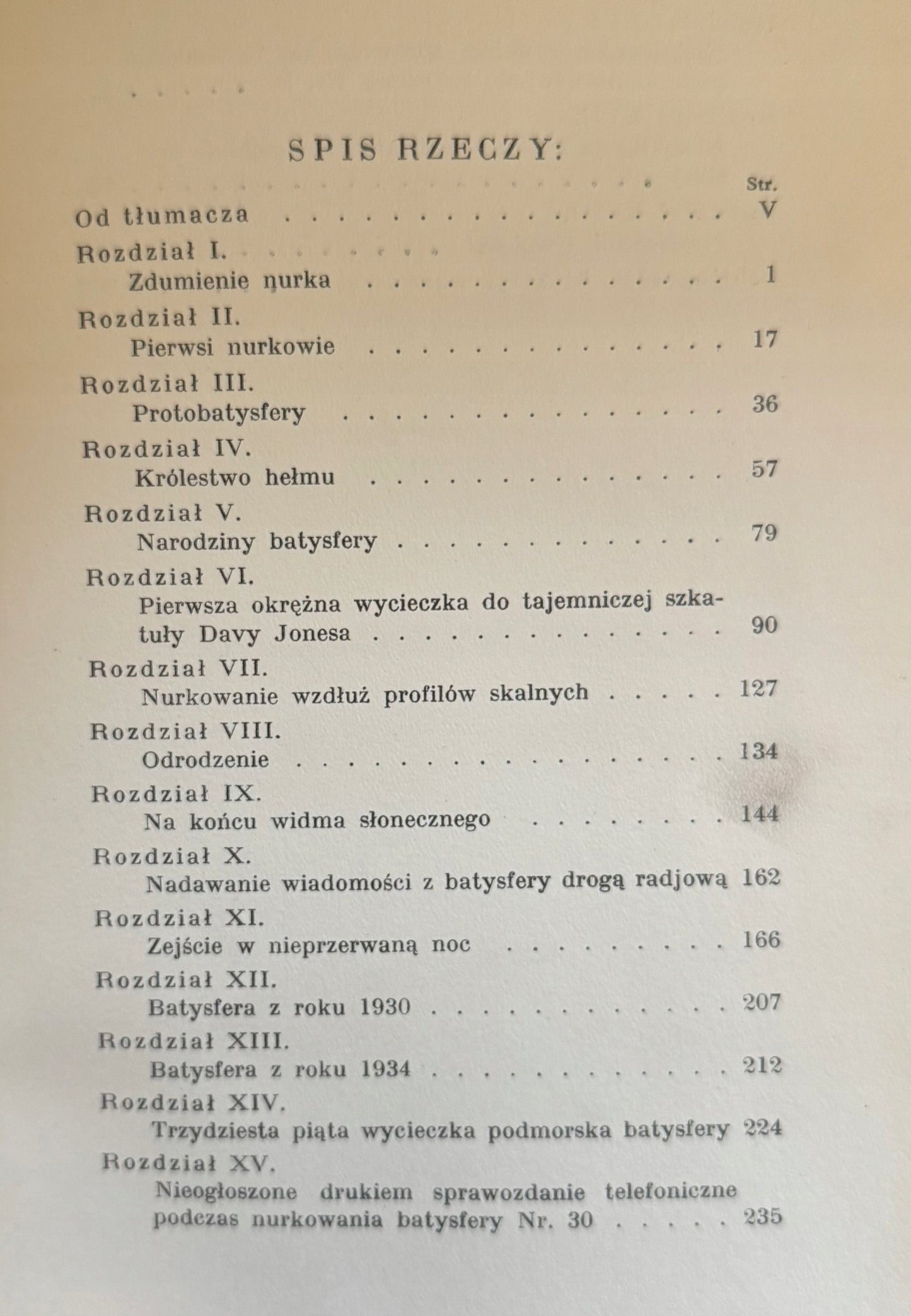 Przedwojenne polskie wydanie relacji z przełomowych podwodnych badań autora – amerykańskiego zoologa i podróżnika. Beebe opisuje swoje pionierskie zanurzenie batysferą na głębokość 923 metrów, przedstawiając obserwacje nieznanego dotąd świata głębin oceanicznych. Książka łączy elementy naukowej dokumentacji z barwną narracją popularnonaukową i stanowi fascynujące świadectwo rozwoju badań oceanograficznych w pierwszej połowie XX wieku.