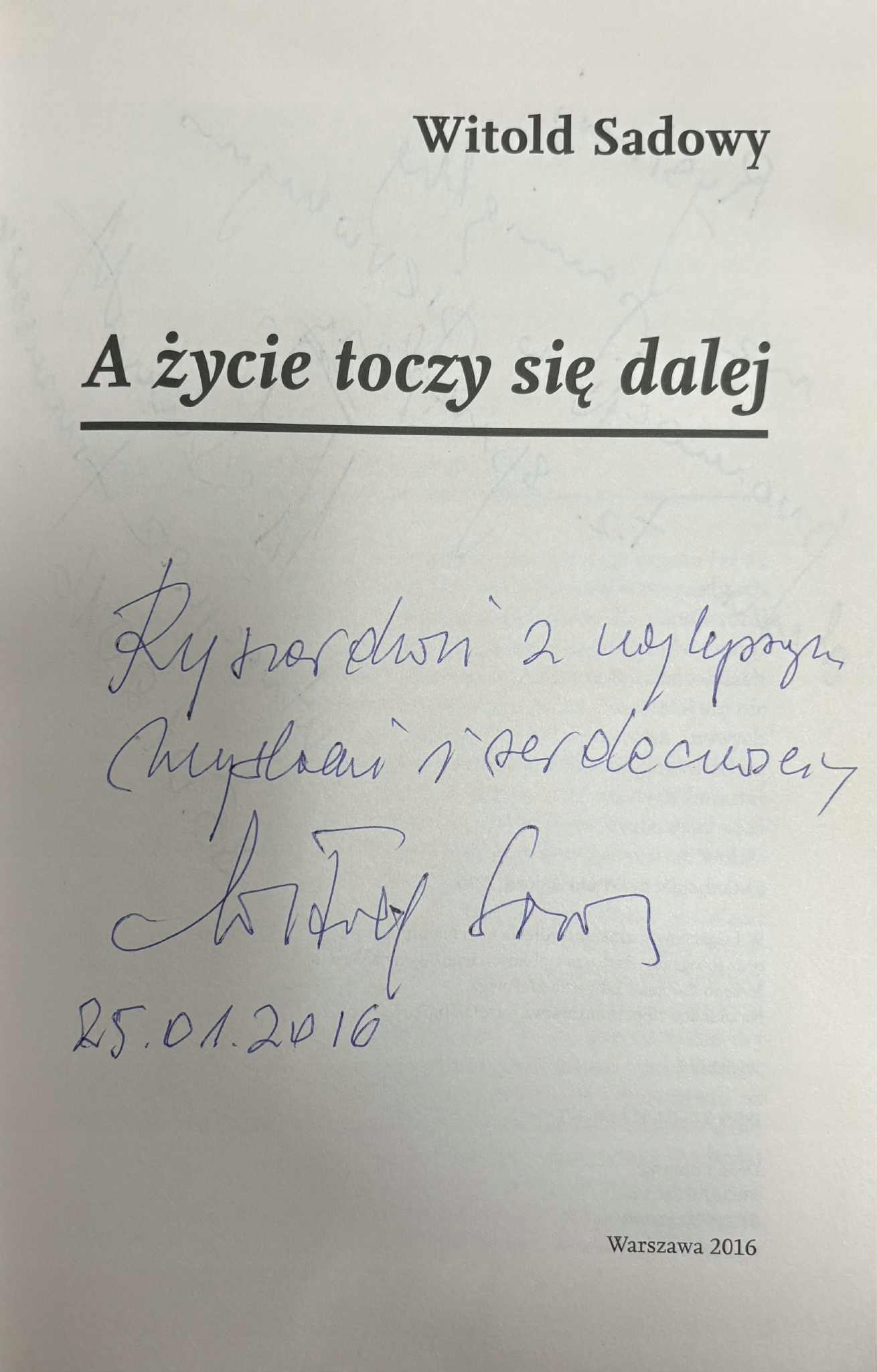 Egzemplarz opatrzony jest dedykacją i podpisem Witolda Sadowego