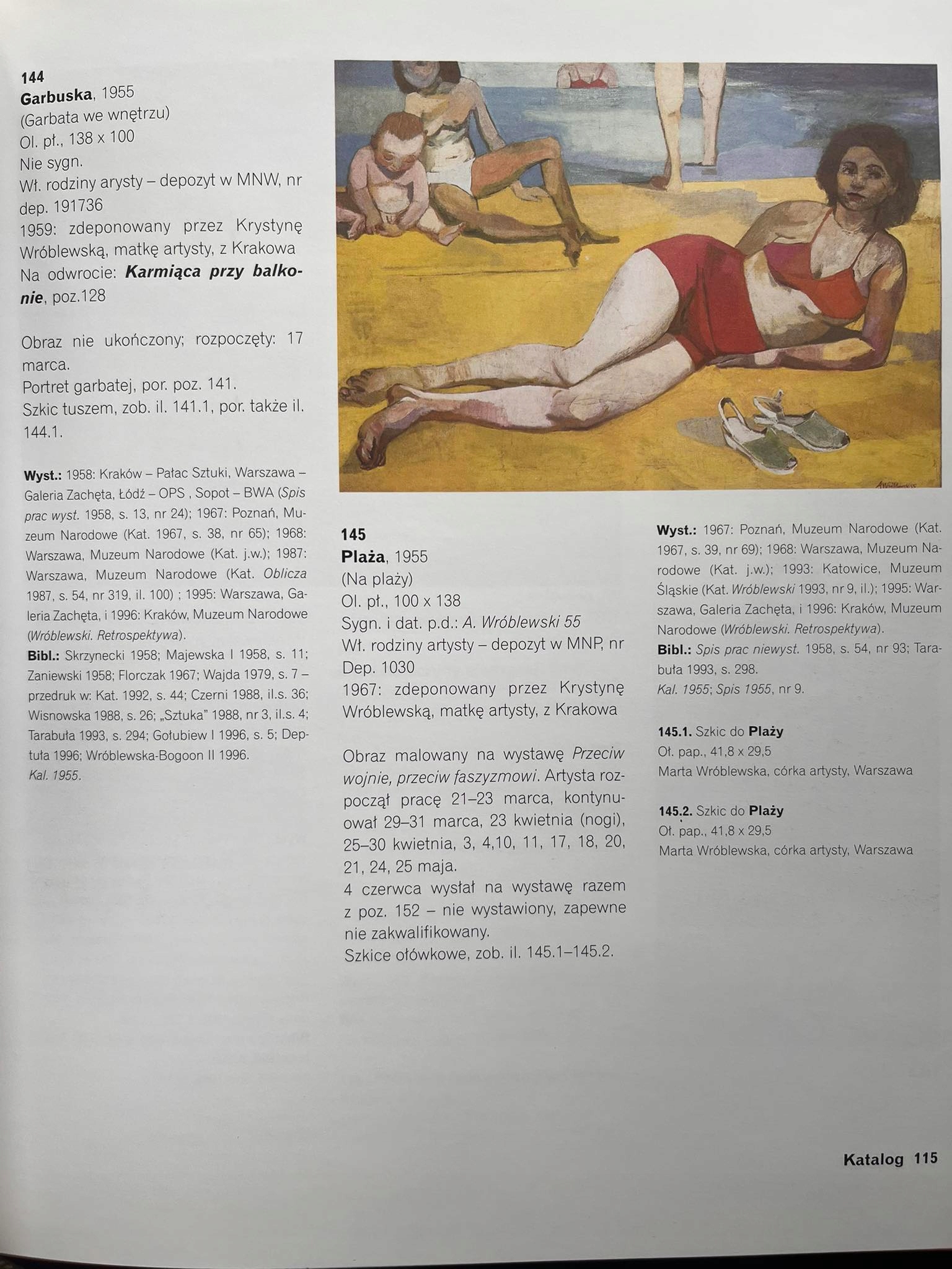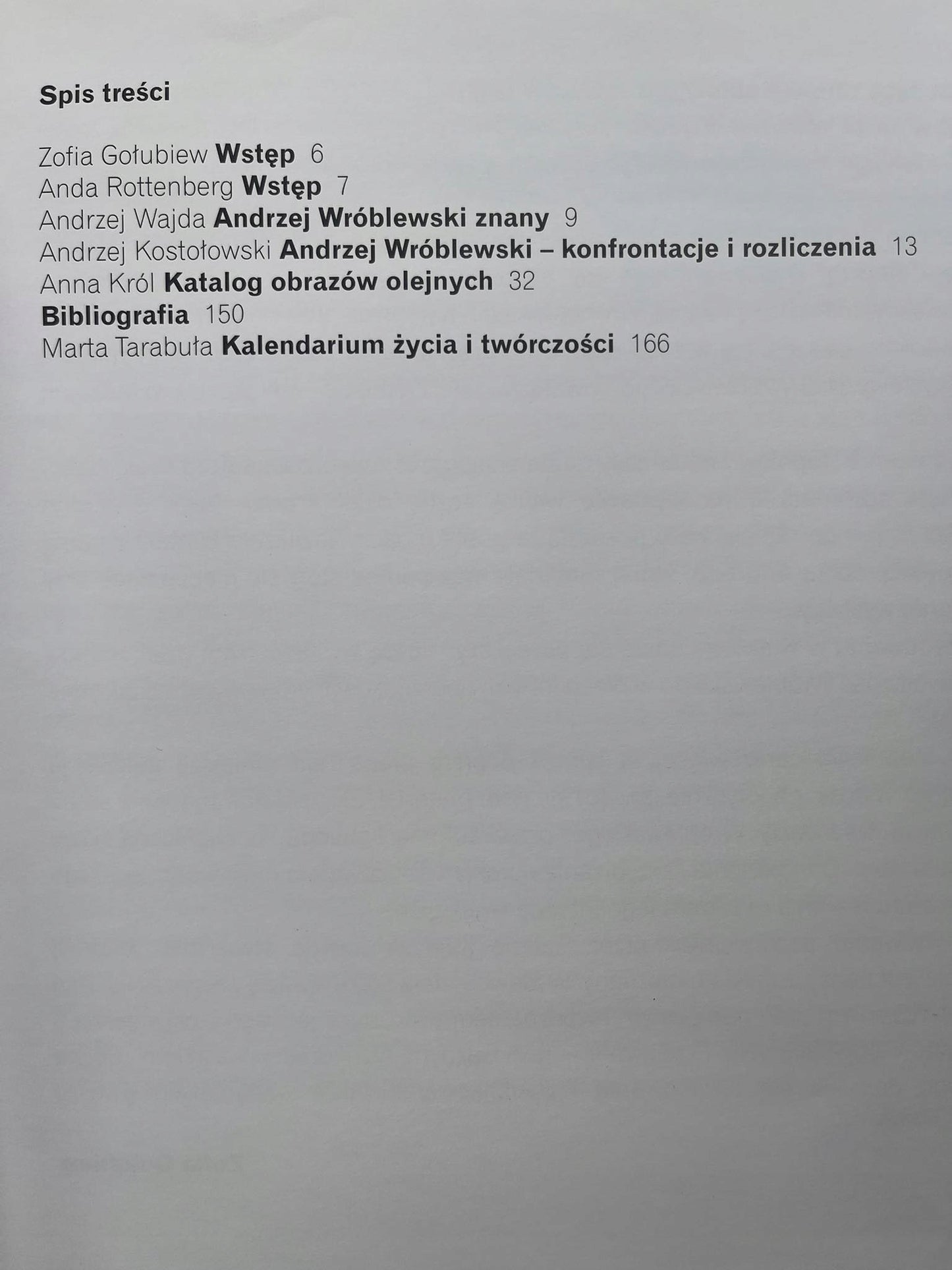 Katalog zawierający spis oraz przy większości reprodukcje 226 prac artysty. Przy każdej z nich bibliografia oraz wykaz wystaw na których były prezentowane. Ponad to załączona obszerna bibliografia dotycząca twórczości Andrzeja Wróblewskiego w pracach monograficznych oraz czasopismach. Bardzo cenna publikacja.
