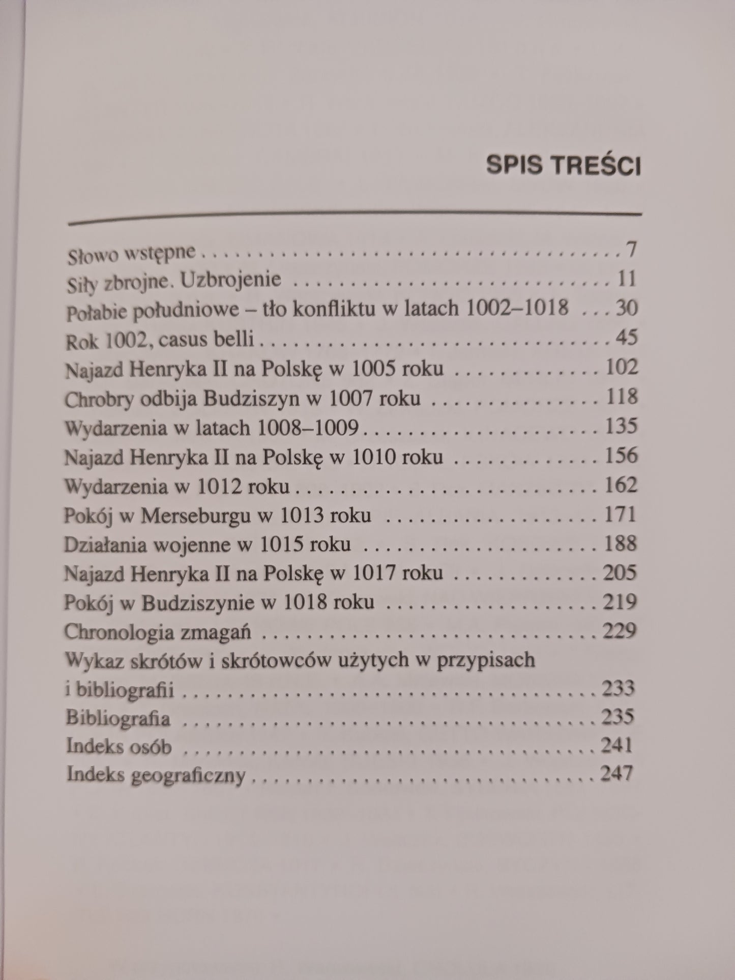 Publikacja opisuje przyczyny, przebieg i wynik wojny toczonej z przerwami w latach 1002-1018 pomiędzy władcą Polski Bolesławem Chrobrym a królem niemieckim (od 1014 roku cesarzem) Henrykiem II. Powody konfliktu były dwa: pierwszy to spór terytorialny o obszar Połabia południowego, czyli Łużyc Górnych (Budziszyn), Łużyc Dolnych (Chociebuż, Gubin, Dobryług) i Marchii Miśnieńskiej (Miśnia, Strzała, Biała Góra); drugi powstał na tle prestiżowym pomiędzy oboma władcami: wzajemnego uznania niezawisłości posiadanej władzy, traktowania na zasadzie równości, uznania godności monarszej oraz respektowania praw politycznych, dziedzicznych i własnościowych konflikt ten szybko przybrał dodatkowo znamiona osobistej rywalizacji. Obaj władcy decydowali o polityce rządzonych przez siebie państw, tym samym to oni ustalali i realizowali interesy państwowe i narodowe krajów, którymi rządzili. Dlatego też wojna, która wybuchła z powodu dwóch wymienionych powyżej konfliktów przybrała siłą rzeczy znamiona konfliktu państwowego.