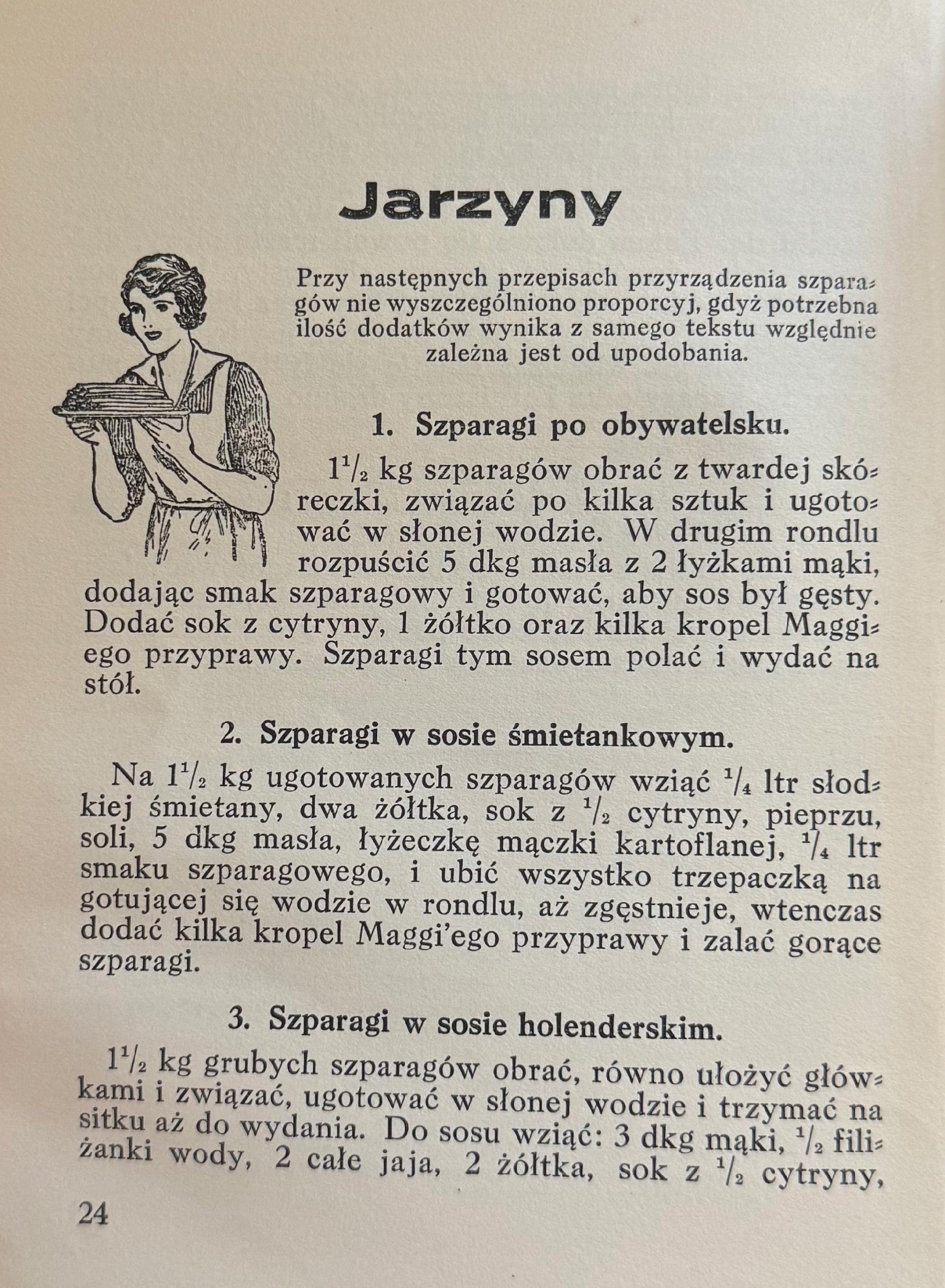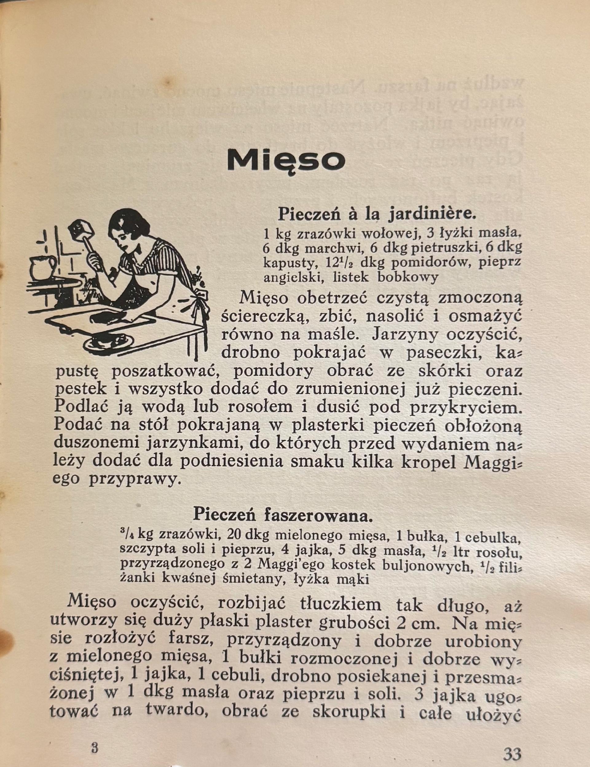 Przedwojenny poradnik kulinarny wydany nakładem firmy Maggi, zawierający przepisy i praktyczne wskazówki dotyczące przygotowywania codziennych posiłków. Publikacja ilustrowana, utrzymana w popularnym stylu epoki, stanowi ciekawy dokument kultury kulinarnej lat 30. XX wieku.