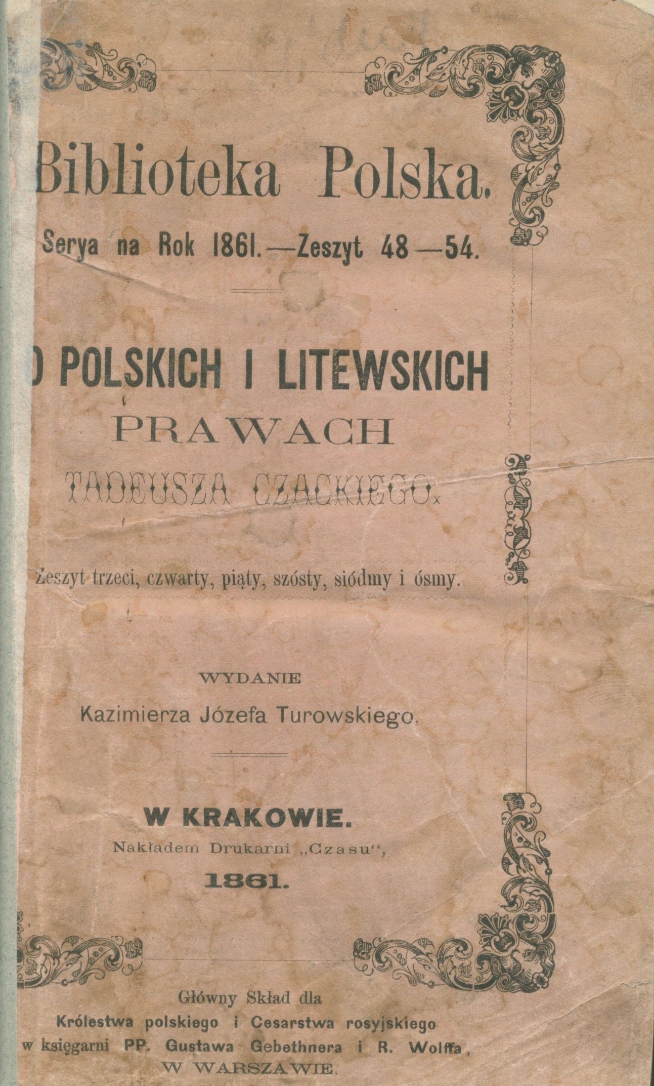 seria: "Biblioteka polska" Kazimierza Turowskiego, seria na 1861, zeszyty 29 - 30 i 48 - 54