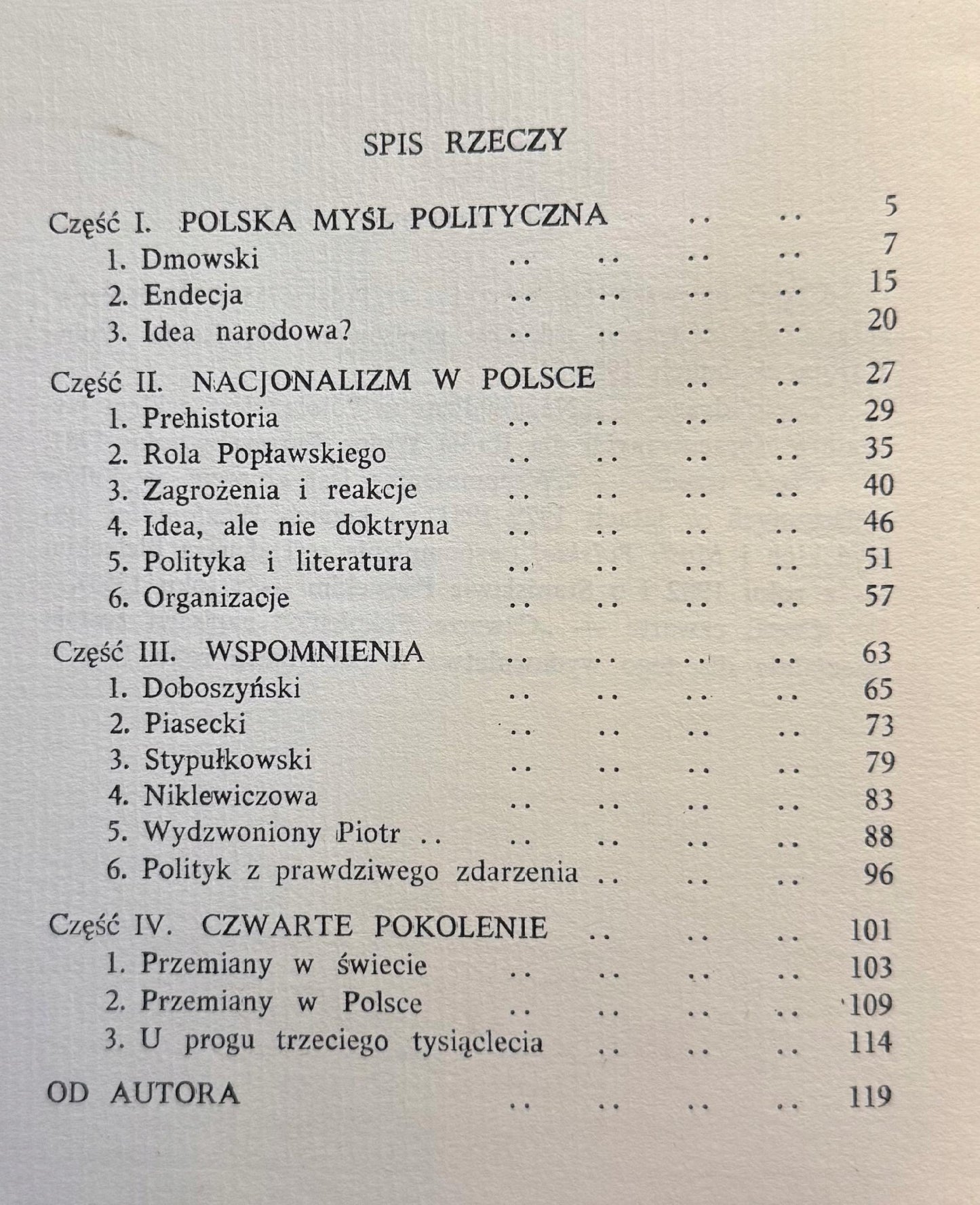 Zbiór refleksji historycznych i ideowych poświęconych rozwojowi polskiego nacjonalizmu, ze szczególnym uwzględnieniem jego przemian w XX wieku. Autor, związany z ruchem narodowym, analizuje postawy kolejnych pokoleń narodowców, ich idee, dylematy i miejsce w historii Polski. Publikacja ma charakter publicystyczny i stanowi ważny głos w debacie nad tożsamością narodową i dziedzictwem politycznym.
