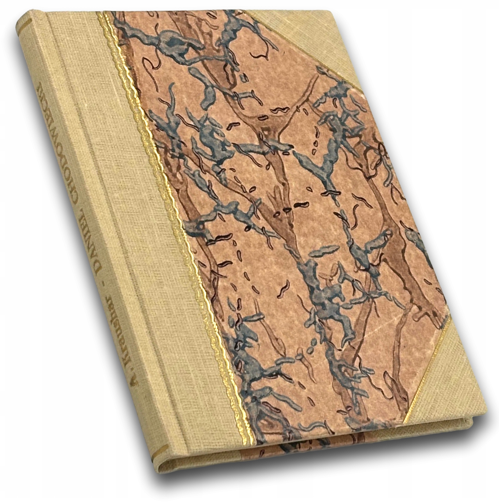 Oprawa: introligatorska w półpłótno, okładki obłożone papierem marmurkowym