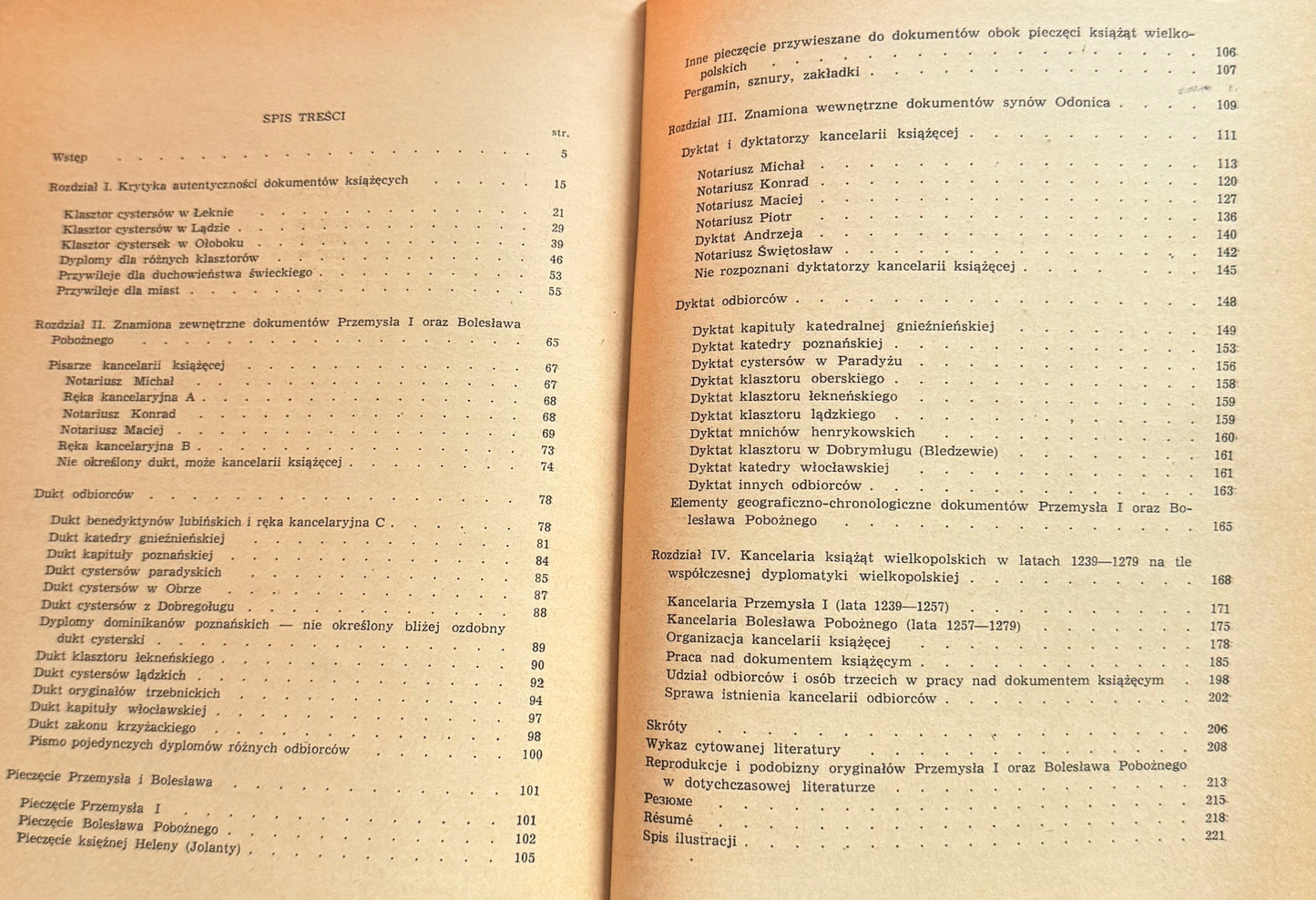 Książka Dokumenty i kancelaria Przemysła I oraz Bolesława Pobożnego 1239-1279 autorstwa Franciszka Sikory (1969) analizuje działalność kancelarii książęcych oraz dyplomatykę Wielkopolski w XIII wieku, stanowiąc cenne źródło do badań nad administracją i dokumentacją w średniowiecznej Polsce.