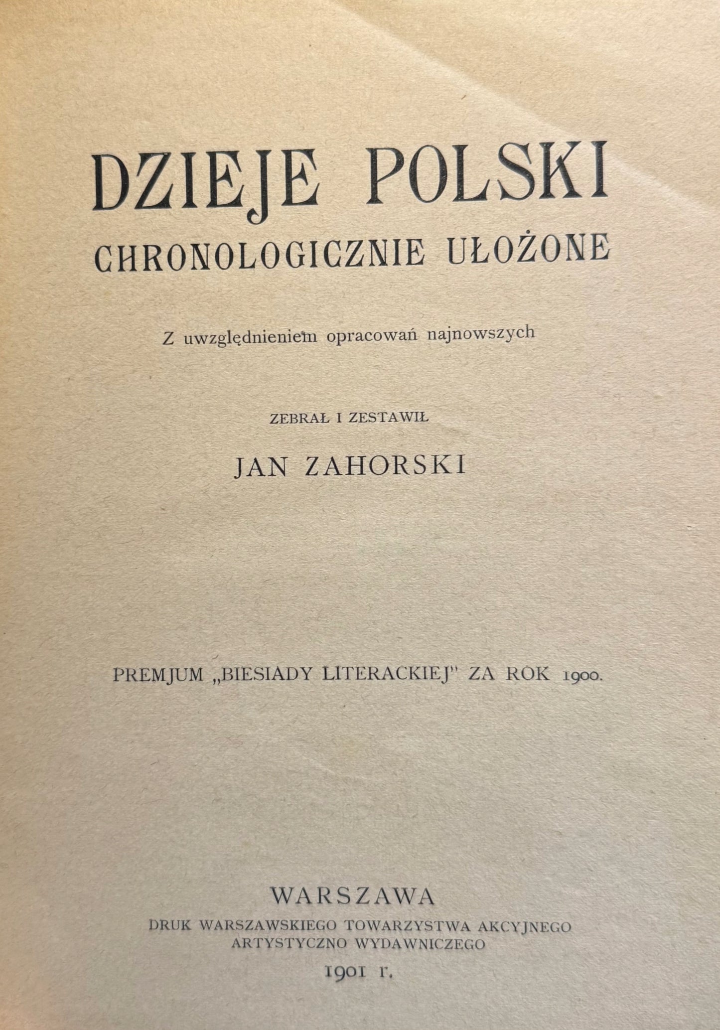 „Dzieje Polski chronologicznie ułożone” Jana Zahorskiego to popularnonaukowe zestawienie najważniejszych wydarzeń z historii Polski, przedstawione w układzie chronologicznym. Wydana w 1901 roku publikacja miała charakter edukacyjny i była przeznaczona dla uczniów oraz miłośników historii, oferując przystępny przegląd dziejów od początków państwa polskiego aż po XIX wiek.