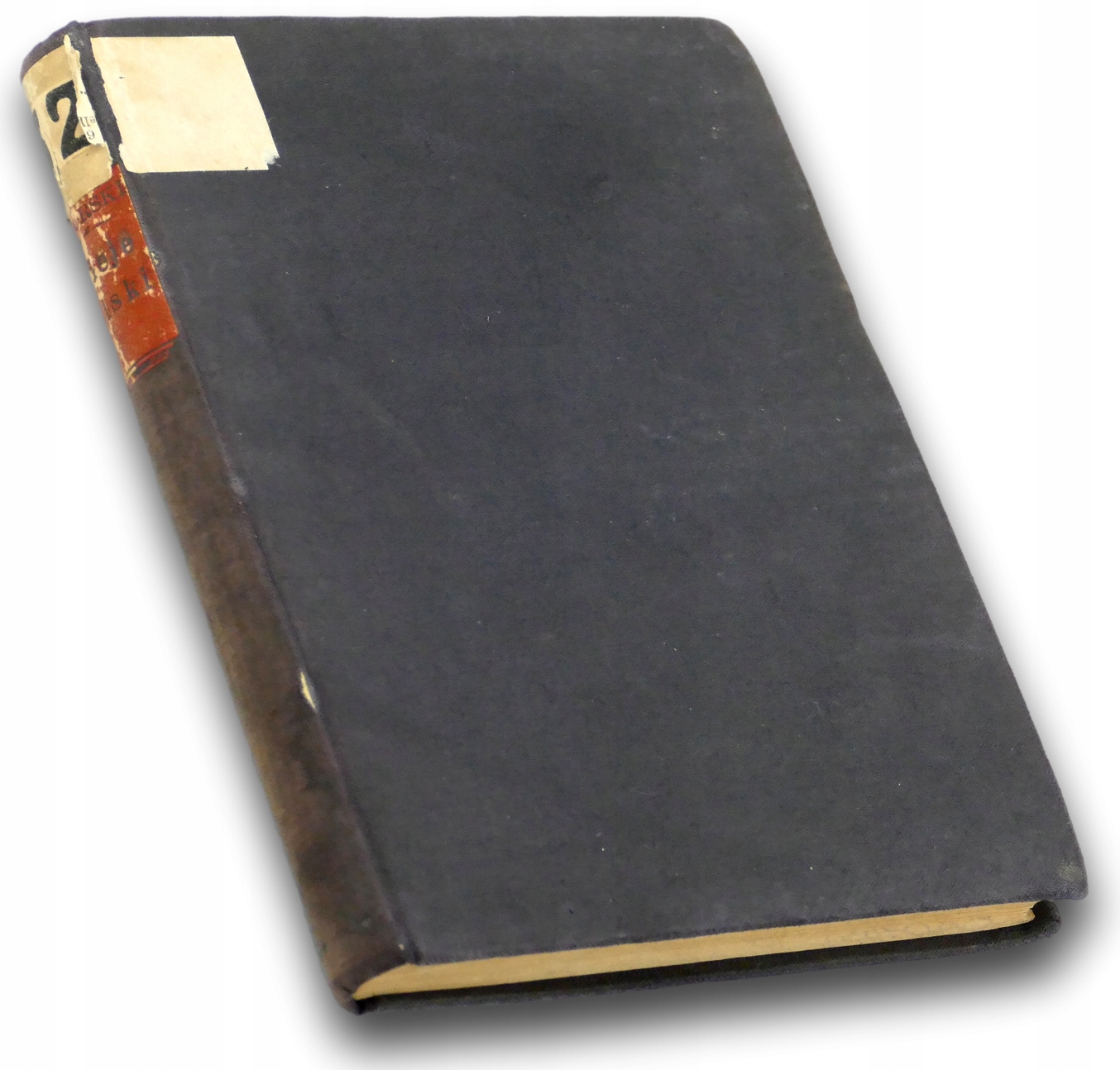 Oprawa: introligatorska, płócienna z szyldzikiem z tytulaturą oraz własnoręcznie zrobionym szyldzikiem z zapiskiem inwentarzowym na grzbiecie / superekslibris na grzbiecie / barwione obcięcia kart
