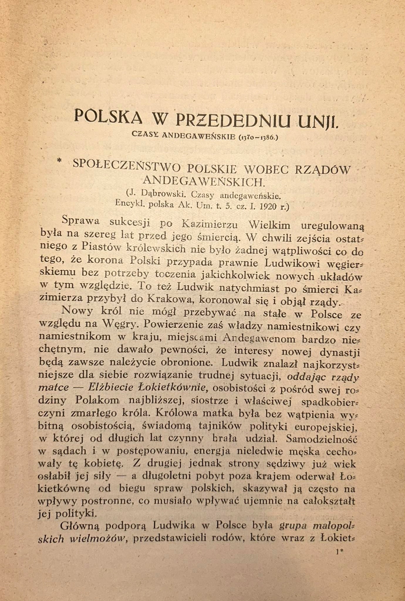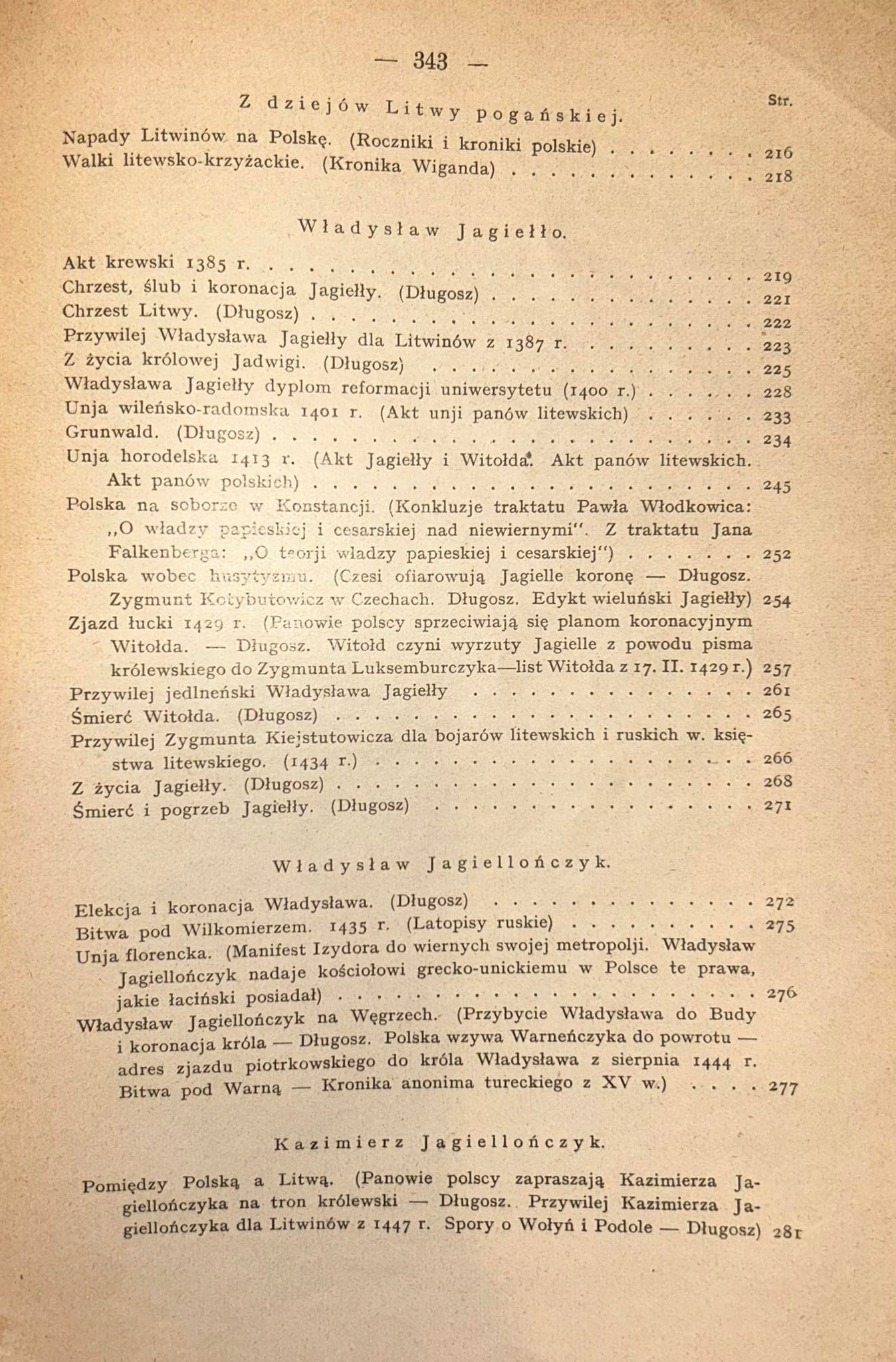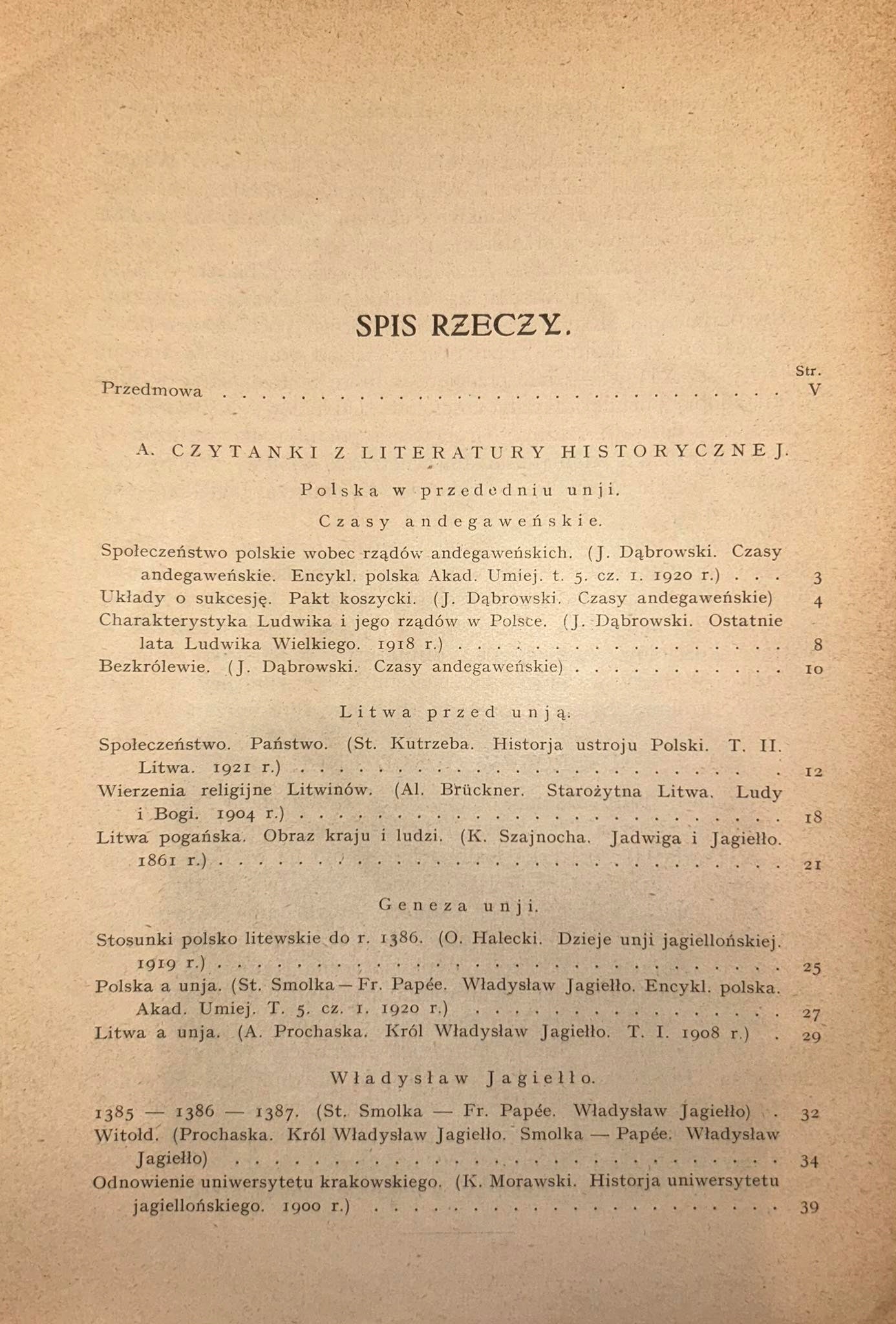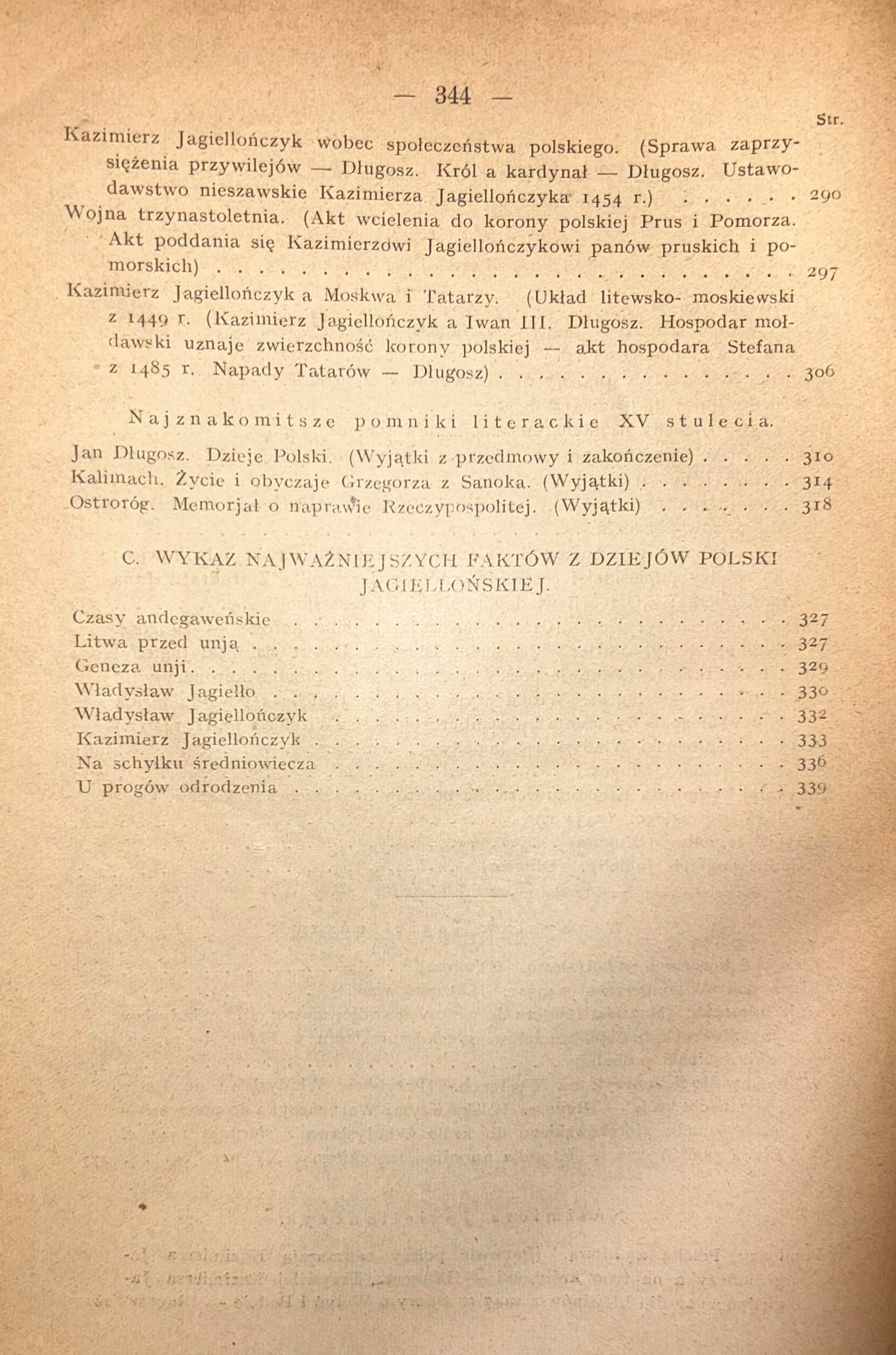 Zawiera m.in.: Czasy andegaweńskie, Litwa przed unją, Geneza unji, Władysław Jagiełło, Władysław Jagiellończyk, Kazimierz Jagiellończyk, Na schyłku średniowiecza, U progów Odrodzenia