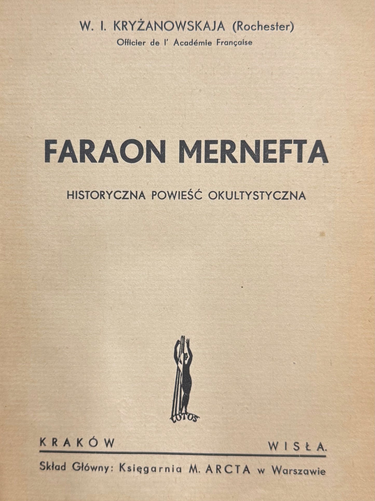 Historyczna powieść okultystyczna osadzona w realiach starożytnego Egiptu. Przedstawia losy faraona Mernefty, splatając wątki polityczne i dworskie z elementami ezoteryki, tajemniczych rytuałów i mistycyzmu. Nastrojowa narracja łączy historię z wizją świata pełnego ukrytych sił i duchowych wpływów. Książka reprezentuje popularny w okresie międzywojennym nurt literatury ezoterycznej.