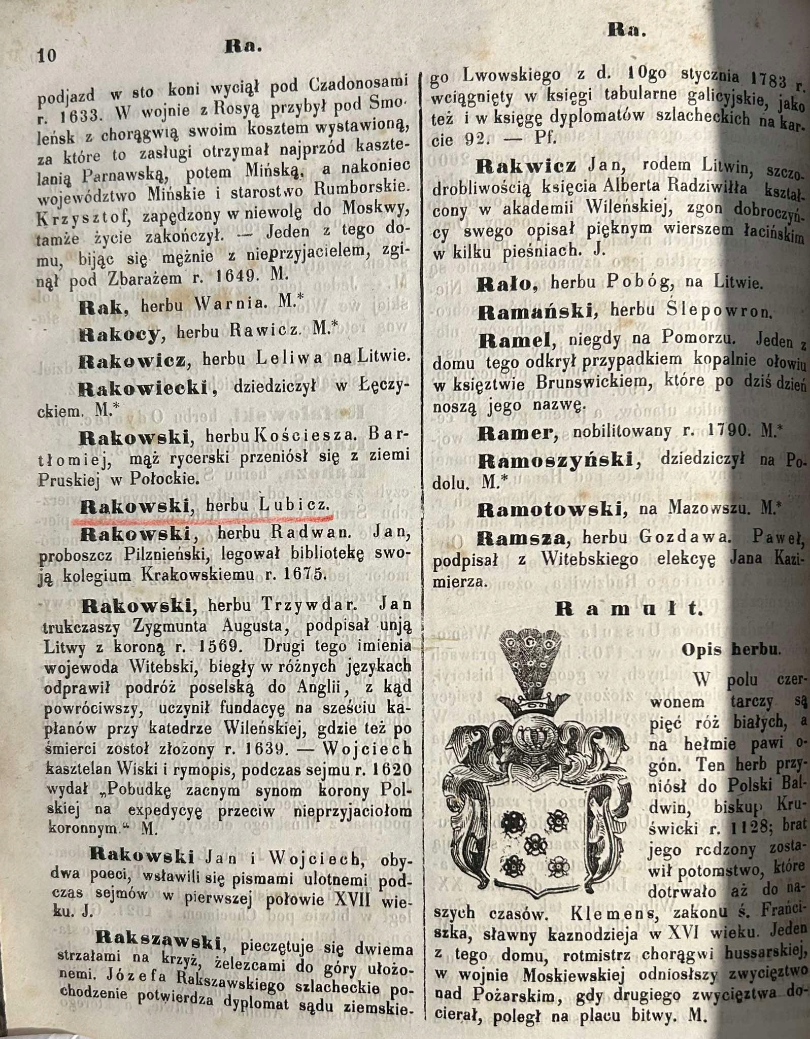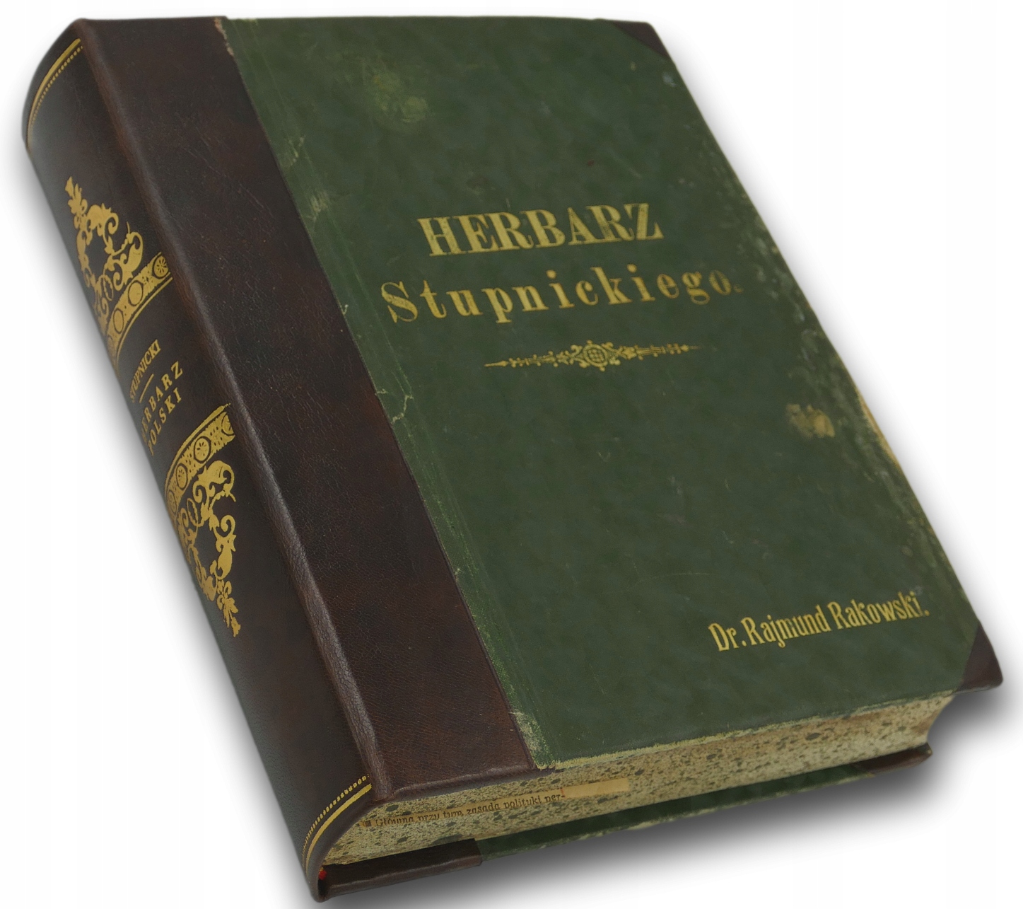 Na stronie tytułowej wklejony kawałek papieru z tłoczonym herbem szlacheckim Lubicz. W tekście znajduje się pojedyncze podkreślenie właściciela przy haśle "Rakowski, herbu Lubicz", Zaś na okładce wytłoczone i pozłocone zostało jego imię i nazwisko (Dr. Rajmund Rakowski).