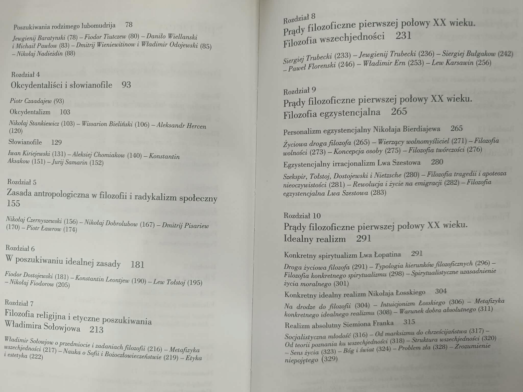 Treściowo książka obejmuje najważniejsze nurty rosyjskiej myśli. W recenzji wymieniono m.in. rozdziały o filozofii staroruskiej, oświeceniu, sporze okcydentalistów i słowianofilów, filozofii Włodzimierza Sołowjowa, renesansie religijno-filozoficznym początku XX wieku, egzystencjalizmie rosyjskim, idealnym realizmie, neokantyzmie, fenomenologii, filozofii sztuki, religii, marksizmie i filozofii poradzieckiej. Stołowicz pokazuje, że filozofia rosyjska nie jest jednolita. Według niego historia myśli rosyjskiej ma charakter pluralistyczny. Nie da się jej sprowadzić ani tylko do materializmu, ani tylko do filozofii religijnej. Jednocześnie autor odrzuca pogląd, że filozofia rosyjska była wyłącznie kopią Zachodu: przyjmowała idee zachodnie, ale przetwarzała je po swojemu, tworząc własne motywy, takie jak sofiologia, wszechjedność czy bogoczłowieczeństwo.