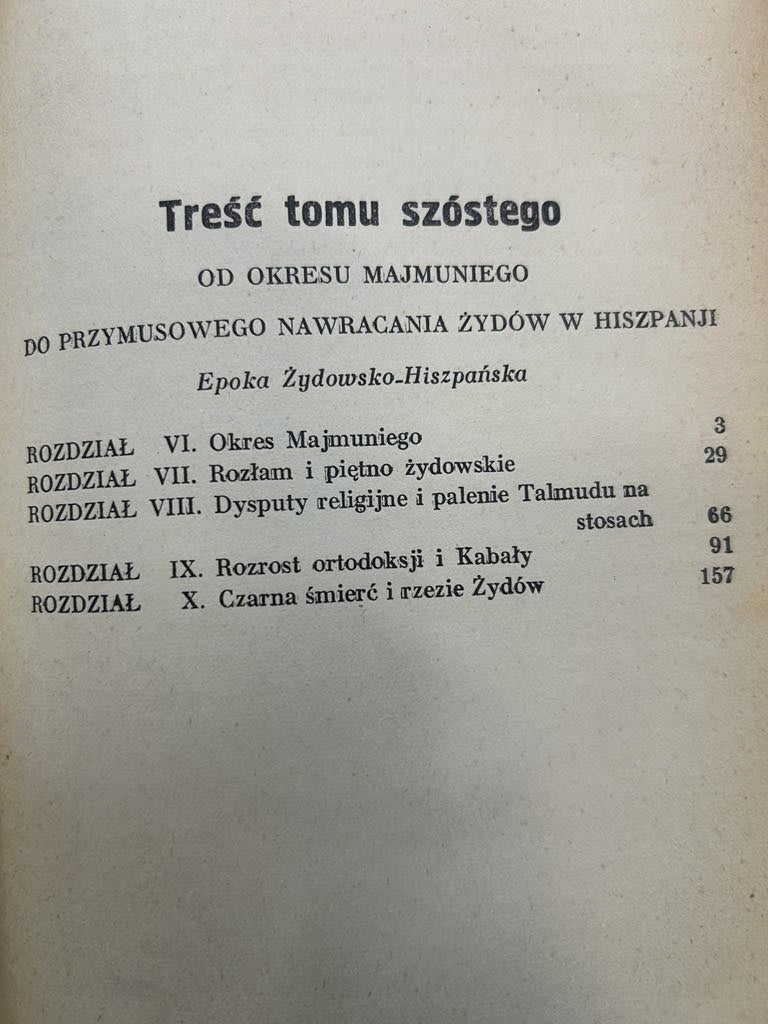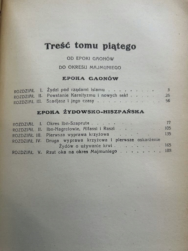 Tytuł: Historja Żydów Tom 5: Od epoki Gaonów do okresu Majmuniego, Tom 6: Od okresu Majmuniego do przymusowego nawracania Żydów w Hiszpanji