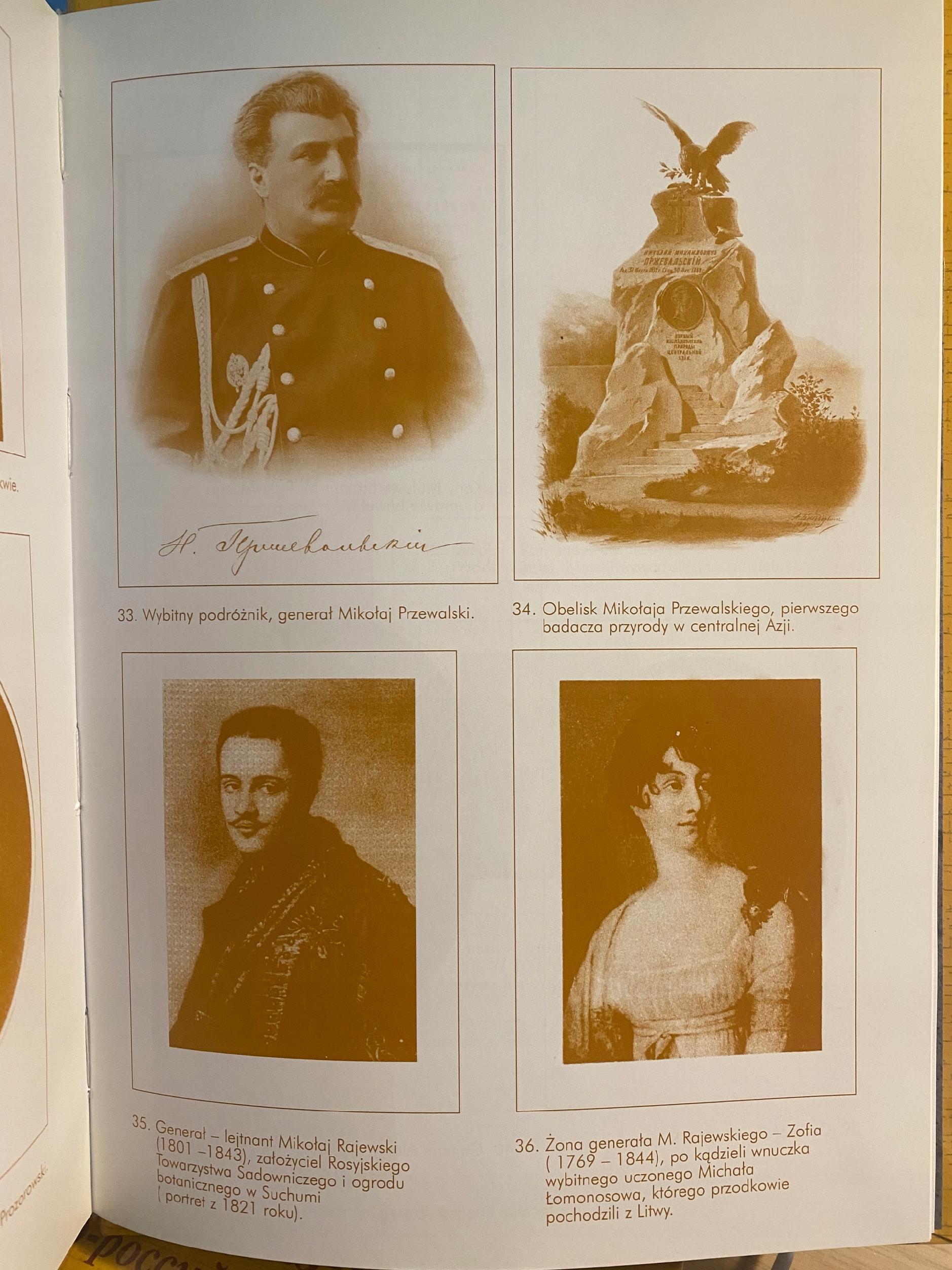 Dzieło zawiera około 2 tysięcy haseł (nazwisk) oraz interesujące ilustracje pochodzące ze zbiorów autora. W liczącym ponad 120 stron wstępie do swego herbarza Jan Ciechanowicz przedstawia skrótowe dzieje narodu, państwa i kultury rosyjskiej, przy czym stosuje charakterystyczną dla siebie metodę collageu. Unikając prezentowania, a tym bardziej narzucania czytelnikowi własnego zdania (z rzadka tylko je sygnalizując), autor przedstawia w nader sugestywny sposób zapatrywania różnych szkół historycznych na dzieje wielkiego imperium słowiańskiego, jakim było i pozostaje Państwo Rosyjskie, stanowiące, według wielu tamtejszych intelektualistów, naturalną kontynuację zarówno Imperium Bizantyjskiego, jak i Mongolskiego. Nawiasem mówiąc, bardzo niewiele narodów posiadało aż tyle energii, mocy, mądrości, siły kreatywnej, by potrafić stworzyć imperium jako dzieło sztuki politycznej i dziejotwórczej... Zapoznajemy się więc w książce Ciechanowicza z poglądami na dzieje Rosji zarówno rosyjskich mocarstwowców i nacjonalistów, jak też romantyków (w tym polskich) i marksistów (w tym niemieckich). Zadziwiają i zaskakują poglądy na Rosję i jej historię zwięźle referowane przez autora, tak znanych pisarzy, jak Astolph de Custine, Emil Cioran, Adam Mickiewicz, Karol Marks, Piotr Czaadajew, Frank Kmietowicz, WładimirUszkujnik, Max Weber, Florian Znaniecki, Lew Gumilow, Adam Naruszewicz, Piotr Kariejew, Josif Brodski, Osip Mandelsztam i szereg innych znakomitych intelektualistów. Autor w interesujący sposób przedstawia pierwsze wieki kształtowania się narodu rosyjskiego i jego państwowości. Okazuje się, że ten prężny i dynamiczny etnos został "założony" przez lechickie plemię Wiatyczów, które w VIII wieku przeniosło się znad Wisły daleko na wschód, założyło tam szereg miast i dało początek narodowi rosyjskiemu, który od pięciu stuleci wywiera ogromny wpływ na dzieje całej ludzkości, będąc potęgą kulturotwórczą, gospodarczą i militarną. Okazuje się też, że potężna i utalentowana dynastia Romanowów pochodzi z Litwy historycznej. Godny uwagi jest również fakt, iż przodkowie współczesnych Białorusinów również przenieśli się na teren obecnego zamieszkania znad Wisły, a zwali się Radymiczami od swego wodza Radyma czy Radymka. W części słownikowej herbarza czytelnicy znajdą ogrom fascynującej informacji o szeregu znakomitych rodzin rosyjskich, szczycących się polsko-litewskim rodowodem, a wśród nich m.in.: Bukowski, Bunin, Bułhakow, Czajkowski, Glinka, Gogol, Ciołkowski, Czaadajew, Dostojewski, Dzierżyński, Mienszykow, Czernyszew, Możajski, Jagodziński, Kiersnowski, Przewalski, Rymski-Korsaakow, Sikorski, Strawiński, Żukowski itd.