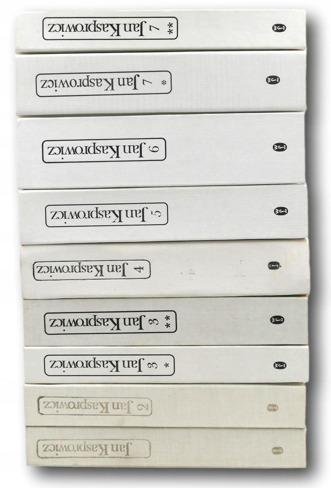 Stan: bardzo dobry-, delikatnie pożółkłe strony tomów 1, 2 i 4, lekko przybrudzona tylna wyklejka tomu 1, podklejenie taśmą na ostatniej stronie tomu 1