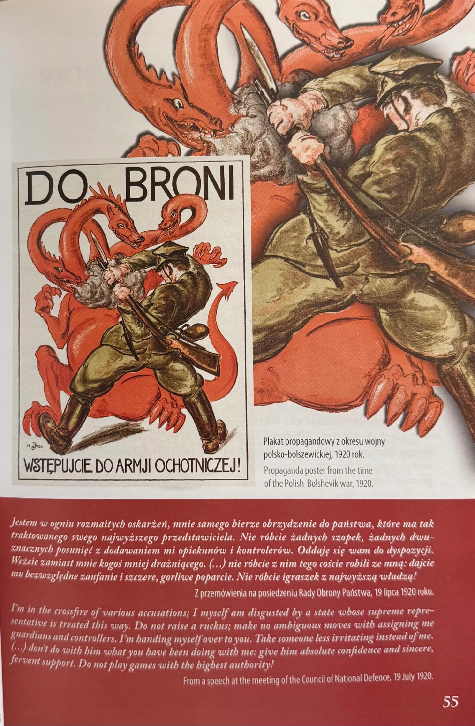 Dwujęzyczny katalog zawiera dużo zdjęć z epoki, plakatów propagandowych, map i druków ulotnych. Stanowi doskonałe źródło wiedzy dla badaczy, historyków i kolekcjonerów zainteresowanych okresem dwudziestolecia międzywojennego oraz przede wszystkim osobą Józefa Piłsudskiego.