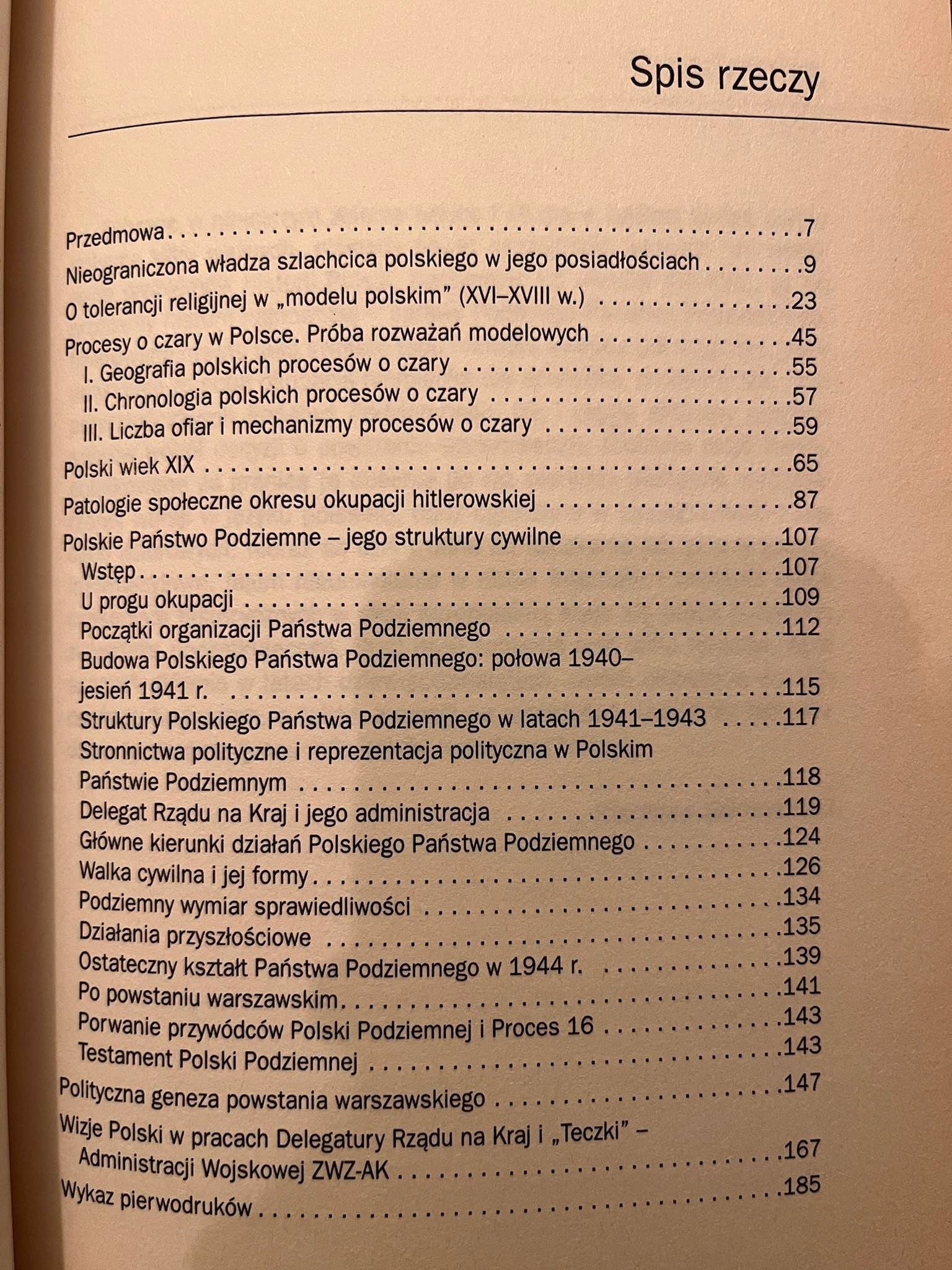 "Zebrane w niniejszym zbiorze szkice i studia w ogólnej liczbie ośmiu dotyczą kilku ważnych, niekiedy nawet szczególnie ważnych czy węzłowych problemów historii Polski, poczynając od wieków XVI-XVIII, aż po problemy historii najnowszej - sprawy Państwa Podziemnego, traktowane często jako swoiste tabu niektóre kwestie patologiczne, jakie przynosiła ze sobą okupacja niemiecka czy sowiecka, problemy tzw. prac przyszłościowych Państwa Podziemnego, jak i ciągle aktualny problem sporów wokół decyzji o powstaniu warszawskim. Niektóre moje teksty, publikowane za granicą (a obecnie po raz pierwszy dostępne w rozszerzonej wersji w języku polskim), bądź ogłaszane w czasopismach i pracach zbiorowych, nieraz są dziś trudne do uzyskania lub giną w szumie informacyjnym, jakim nieuniknienie w dobie Internetu i istnienia setek czasopism historycznych w skali europejskiej staje się praca historyka, zwłaszcza początkującego. Stąd myśl zebrania tych kilku tekstów, ogłaszanych głównie w latach dziewięćdziesiątych, celem ułatwienia do nich dostępu badaczom, a także, z uwagi na syntetyczny charakter tych studiów, szerszemu gronu miłośników narodowej historii."