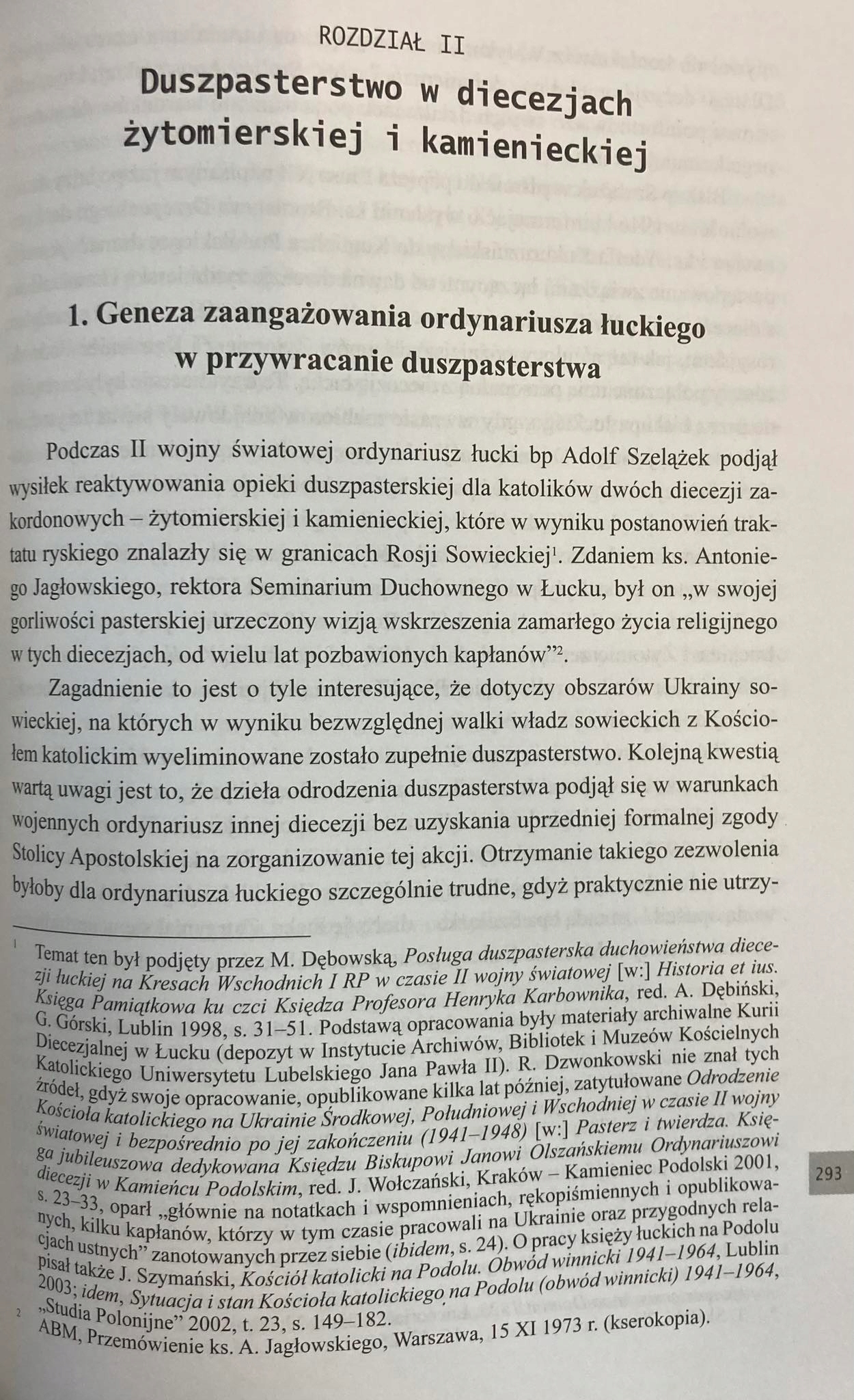 Książka dr Marii Dębowskiej prezentuje obraz Kościoła katolickiego w diecezji łuckiej w okresie II wojny światowej. Autorka skoncentrowała się na dwóch zasadniczych zagadnieniach, które stanowią dwie części pracy. Pierwsza została poświęcona aspektom organizacyjnym. Zaprezentowano tu warunki społeczno-polityczne obowiązujące na Wołyniu podczas zmieniających się okupacji sowieckiej i niemieckiej, funkcjonowanie centralnych urzędów i instytucji diecezji łuckiej oraz sylwetki duchownych. W drugiej części pracy, zatytułowanej „Płaszczyzna religijna i społeczna”, ukazana została działalność duszpasterska prowadzona podczas okupacji w diecezjach: łuckiej oraz żytomierskiej i kamienieckiej. Zaprezentowano praktyki religijne wypełniane przez wiernych podczas wojny. Przedstawiono również działalność niepodległościową duchowieństwa polskiego na Wołyniu.
