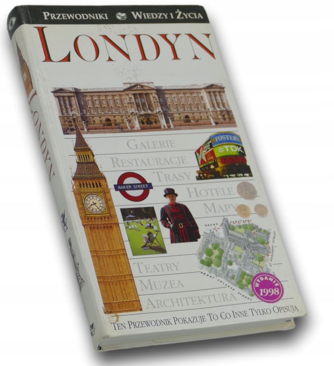 Londyn z serii przewodników Wiedzy i Życia to przewodnik, który pokazuje to, co inne tylko opisują. Zawiera ponad 1200 kolorowych, wykonanych specjalnie do tej publikacji zdjęć, prezentujących to, co w Londynie najciekawsze. Unikalne przekroje i plany przedstawiają pierwotny wygląd obiektów oraz ułatwiają samodzielne zwiedzanie. Łatwe do odczytania trójwymiarowe rysunki ukazują fragmenty miast i stanowisk archeologicznych. Z pomocą informacji o świętach, festiwalach i wydarzeniach kulturalnych oraz bazie hotelowej i gastronomicznej można zaplanować ciekawy program wycieczek.