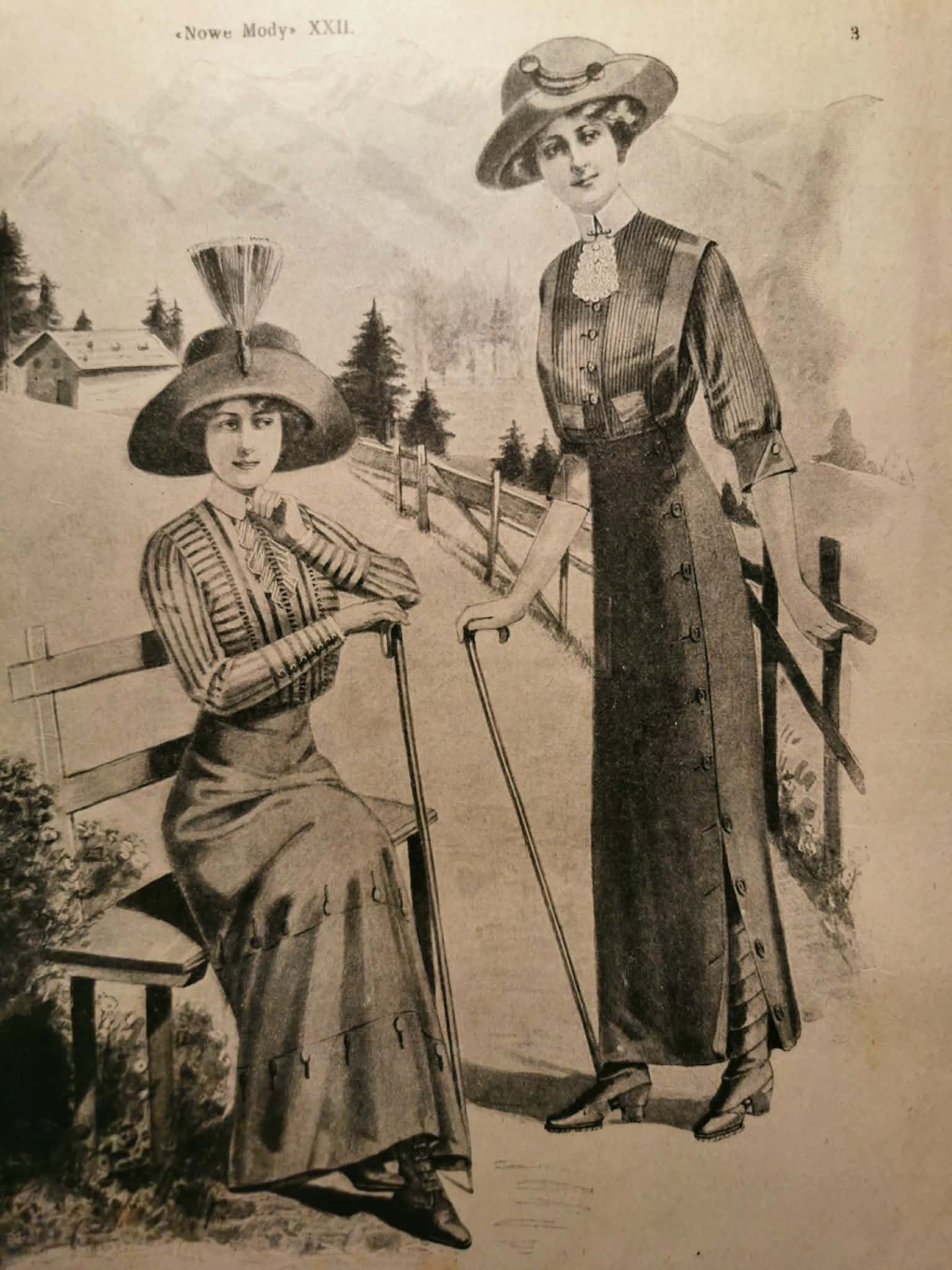 "Nowe Mody" to pierwszy galicyjski żurnal, pojawiający się od 1840 r. dzięki wysiłkom lwowskiego krawca - Tomasza Kulczyckiego. Czasopismo wydawane było dwukrotnie w miesiącu, zawierało nie tylko wykroje ale także artykuły historyczno - literackie. Skierowane głównie do kobiet klasy średniej wyższej i burżuazji, posiada przekrój nowinek dotyczących ówczesnej stylizacji - numer 17 skupia się głównie na dodatkach do ubioru (przedstawione są opaski ze skrzydłami czy egrety ze strusich piór do letnich kapeluszy), pokazuje mody salonów paryskich, jak i nawiązuje do tradycyjnych polskich haftów (bukowińskich). Mimo braku tablicy wykrojów, w numerze znaleźć można instrukcje dotyczące wykonania plecionych wazonów czy haftów - umieszczony jest także kurs robót ręcznych dla dzieci.