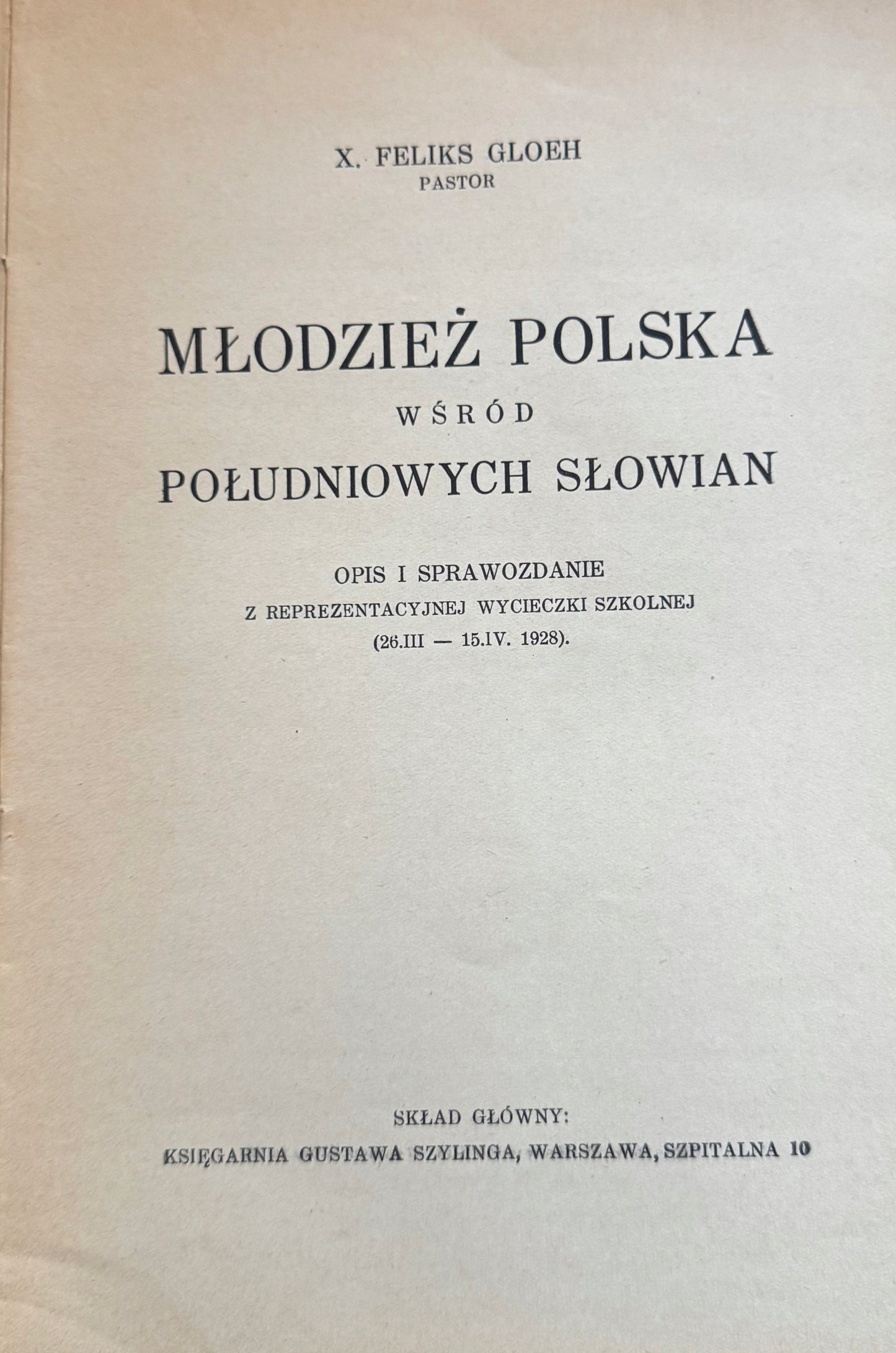 Książka "Młodzież polska wśród południowych Słowian. Opis i sprawozdanie z reprezentacyjnej wycieczki szkolnej (26.III-15.IV. 1928)" autorstwa Feliksa Gloeha, wydrukowana w 1929 roku przez F. Wyszyński i S-ka, to szczegółowa relacja z edukacyjnej podróży młodzieży polskiej po krajach południowosłowiańskich. Publikacja opisuje przebieg wycieczki, odwiedzane miejsca, spotkania z lokalnymi społecznościami oraz wrażenia uczestników. Książka jest cennym źródłem informacji o relacjach polsko-jugosłowiańskich w okresie międzywojennym, a także świadectwem ówczesnych form wymiany kulturalnej i edukacyjnej.
