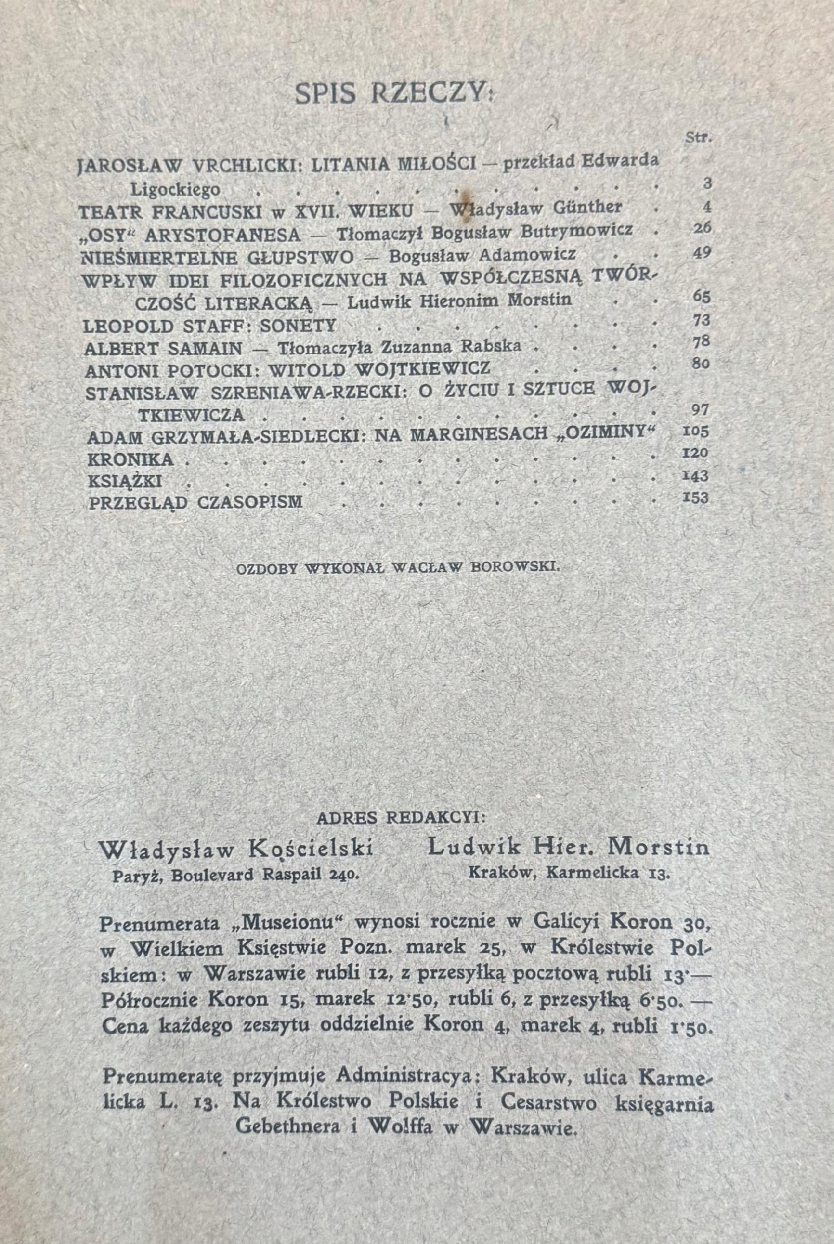 Tytuł: Museion Miesięcznik poświęcony literaturze i sztuce Rok I 1911 Zeszyt IV