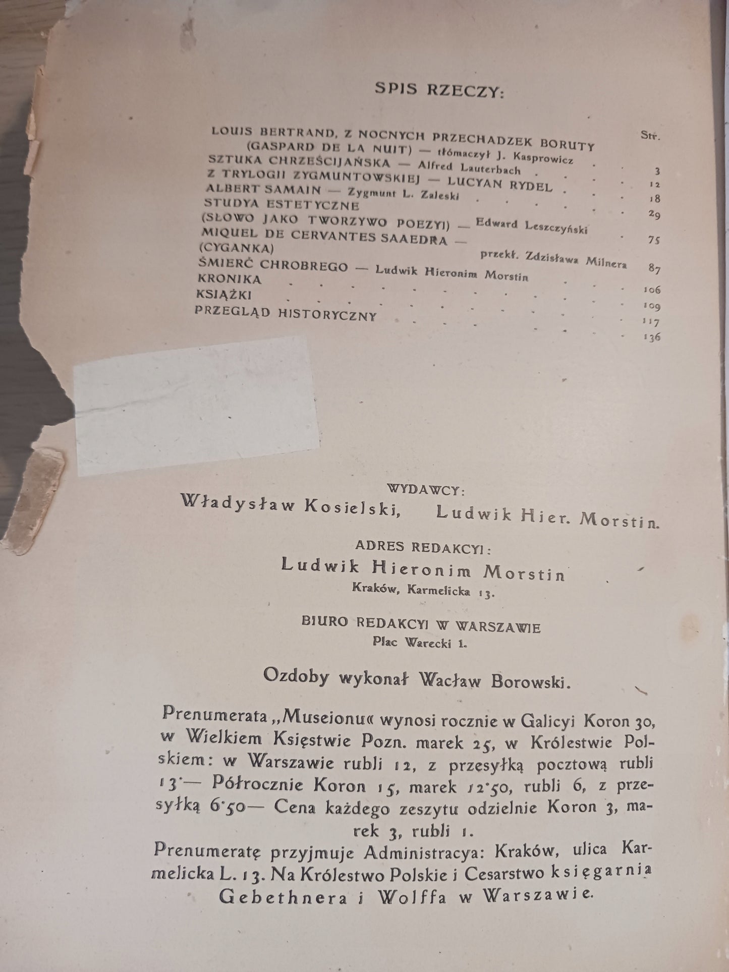 Tytuł: Museion Miesięcznik poświęcony literaturze i sztuce Rok II zeszyt 1
