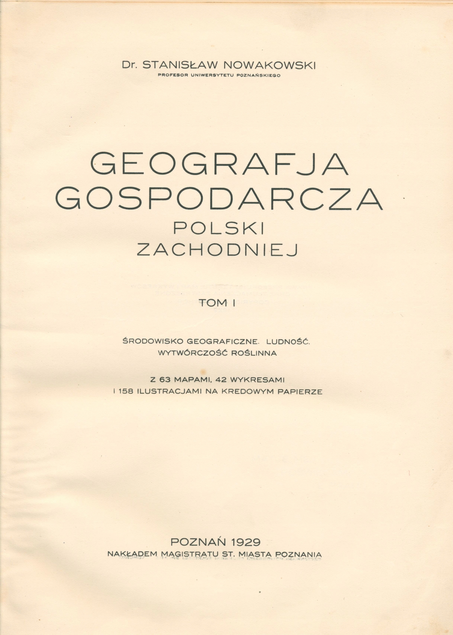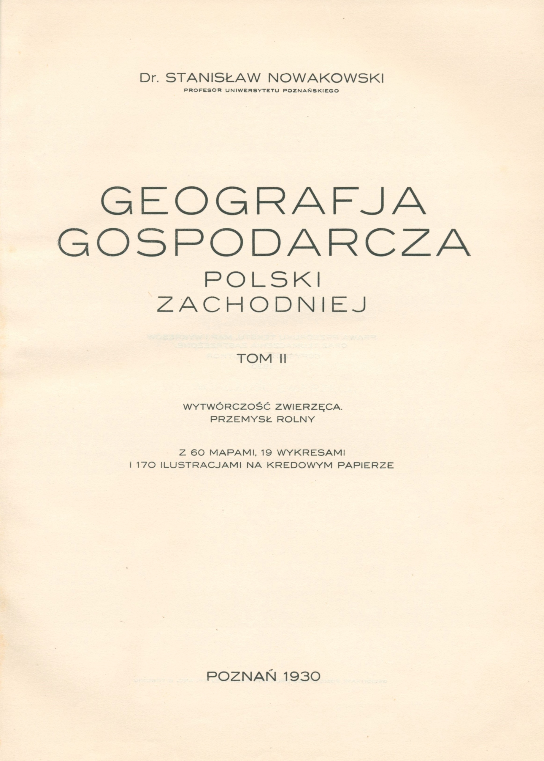 Obszerne, przedwojenne opracowanie poświęcone środowisku geograficznemu, strukturze ludności oraz gospodarce rolnej i przemysłowi Polski Zachodniej. Tom I obejmuje m.in. zagadnienia klimatu, demografii i wytwórczości roślinnej, zaś Tom II – hodowlę zwierząt oraz przemysł rolny (młynarski, cukrowniczy, spirytusowy, włókienniczy, winiarski). Publikacja wzbogacona bogatym materiałem ilustracyjnym: mapami, wykresami i tablicami.