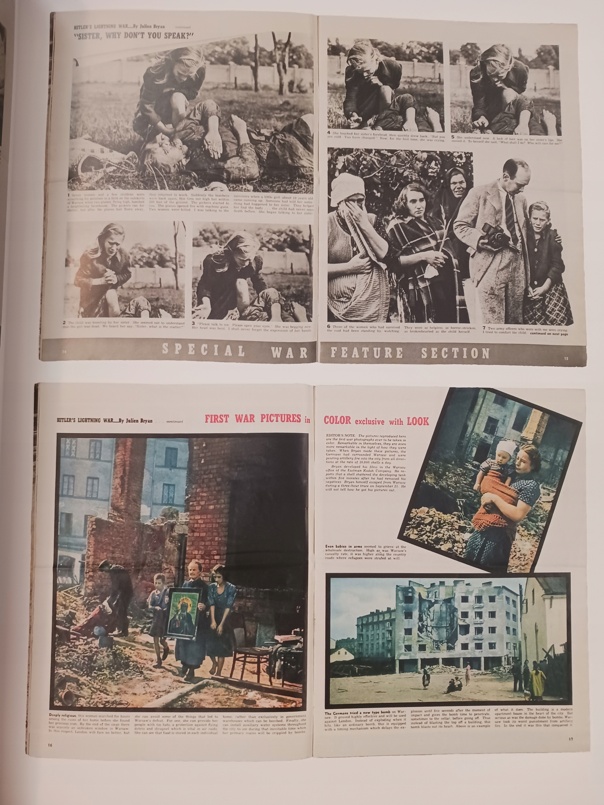 7 września 1939 r. ostatnim pociągiem przyjechał do Warszawy amerykański fotograf, filmowiec i podróżnik Julien Bryan. Chciał zrobić kilka zdjęć zza linii frontu i bezpiecznie wrócić, nim wojska niemieckie dotrą w głąb kraju. Pozostał jednak w oblężonym mieście przez dwa tygodnie. Był jedynym zagranicznym fotoreporterem i czuł się zobowiązany do pokazania światu tragicznego losu jego mieszkańców.