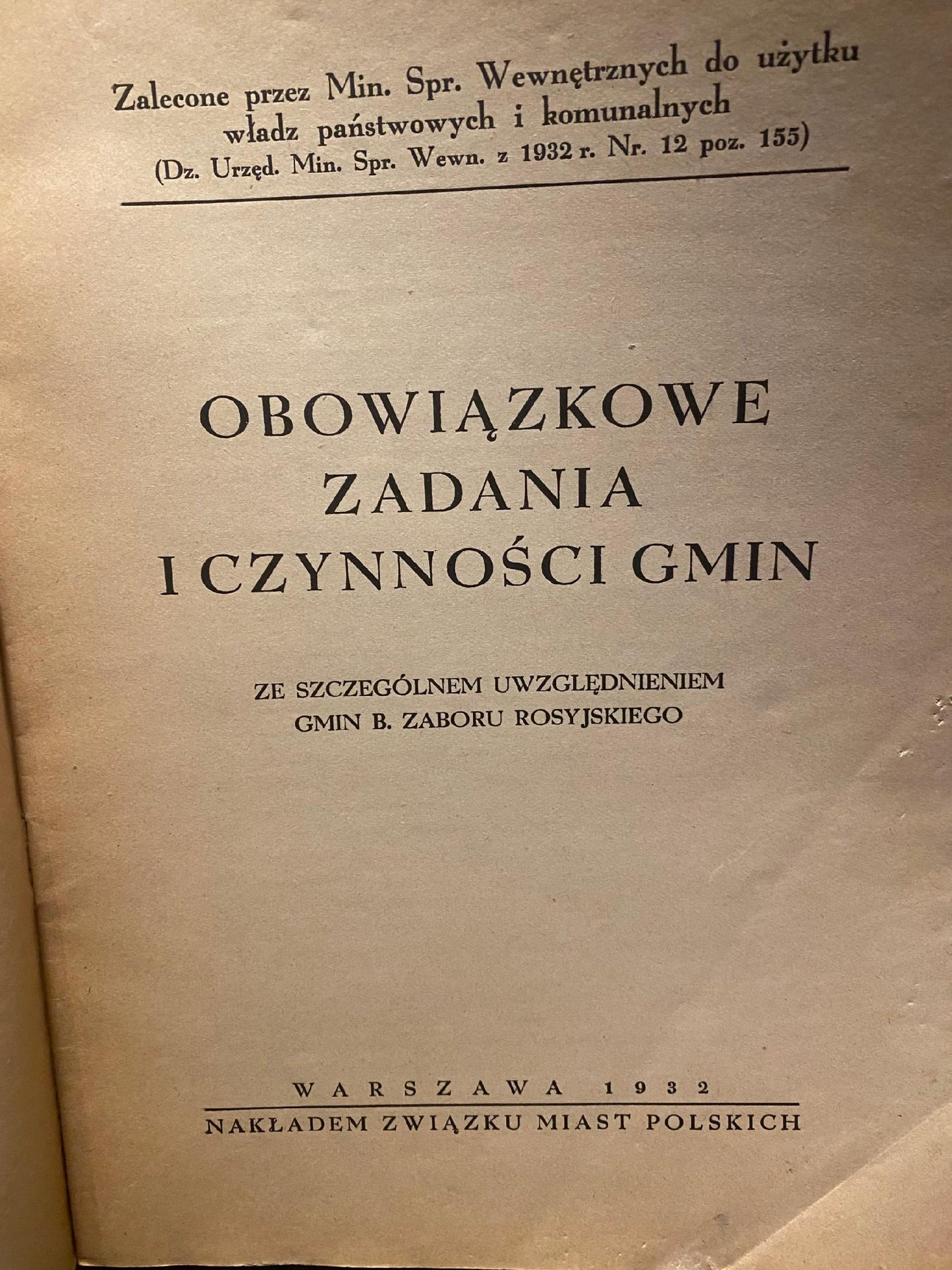 Książka “Obowiązkowe zadania i czynności gmin ze szczególnym uwzględnieniem gmin b. zaboru rosyjskiego” to publikacja wydana w 1932 roku przez Związek Miast Polskich.