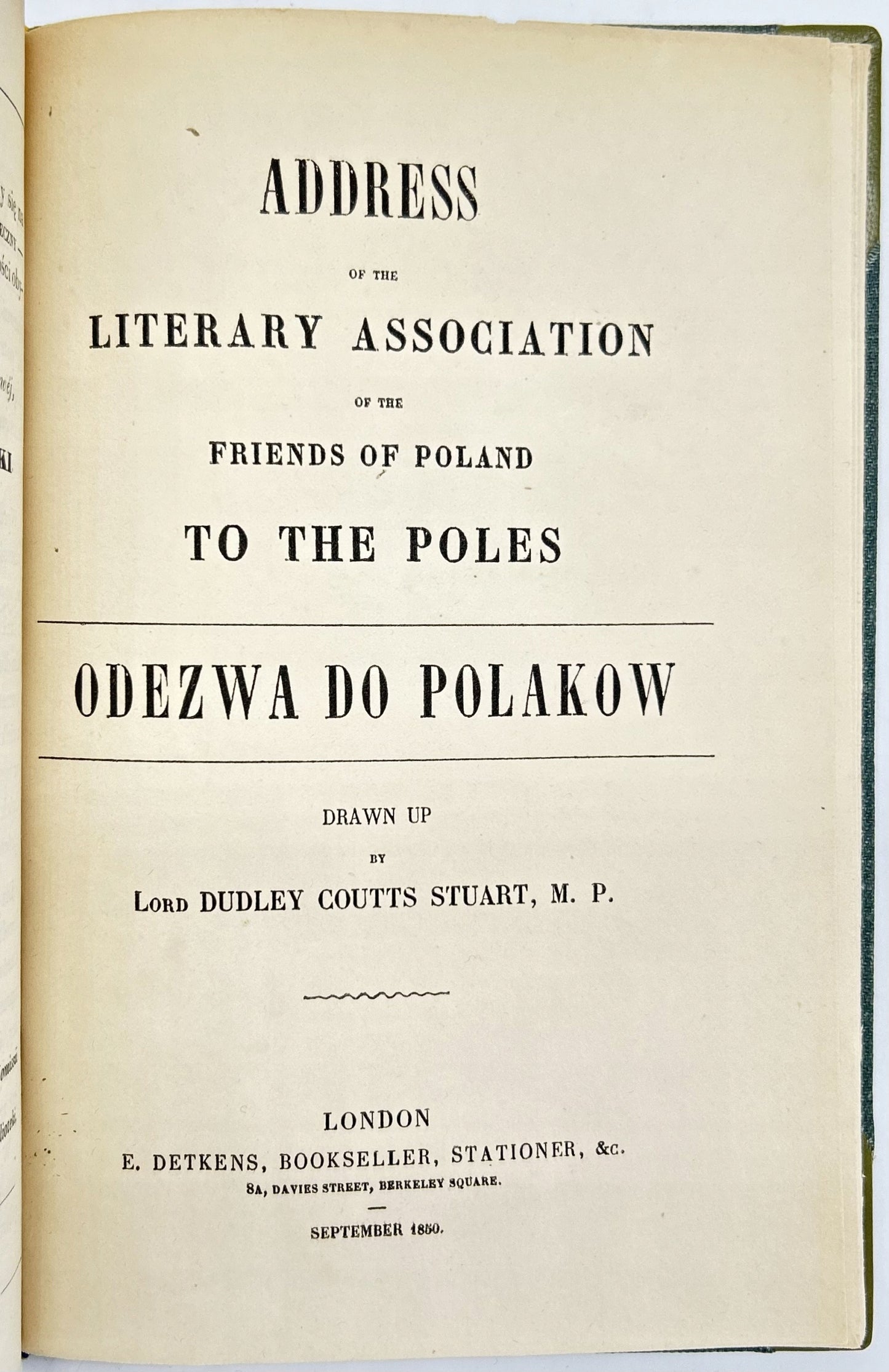 - Address of the Literary Association of the Friends of Poland to the People of Great Britain and Ireland (I)