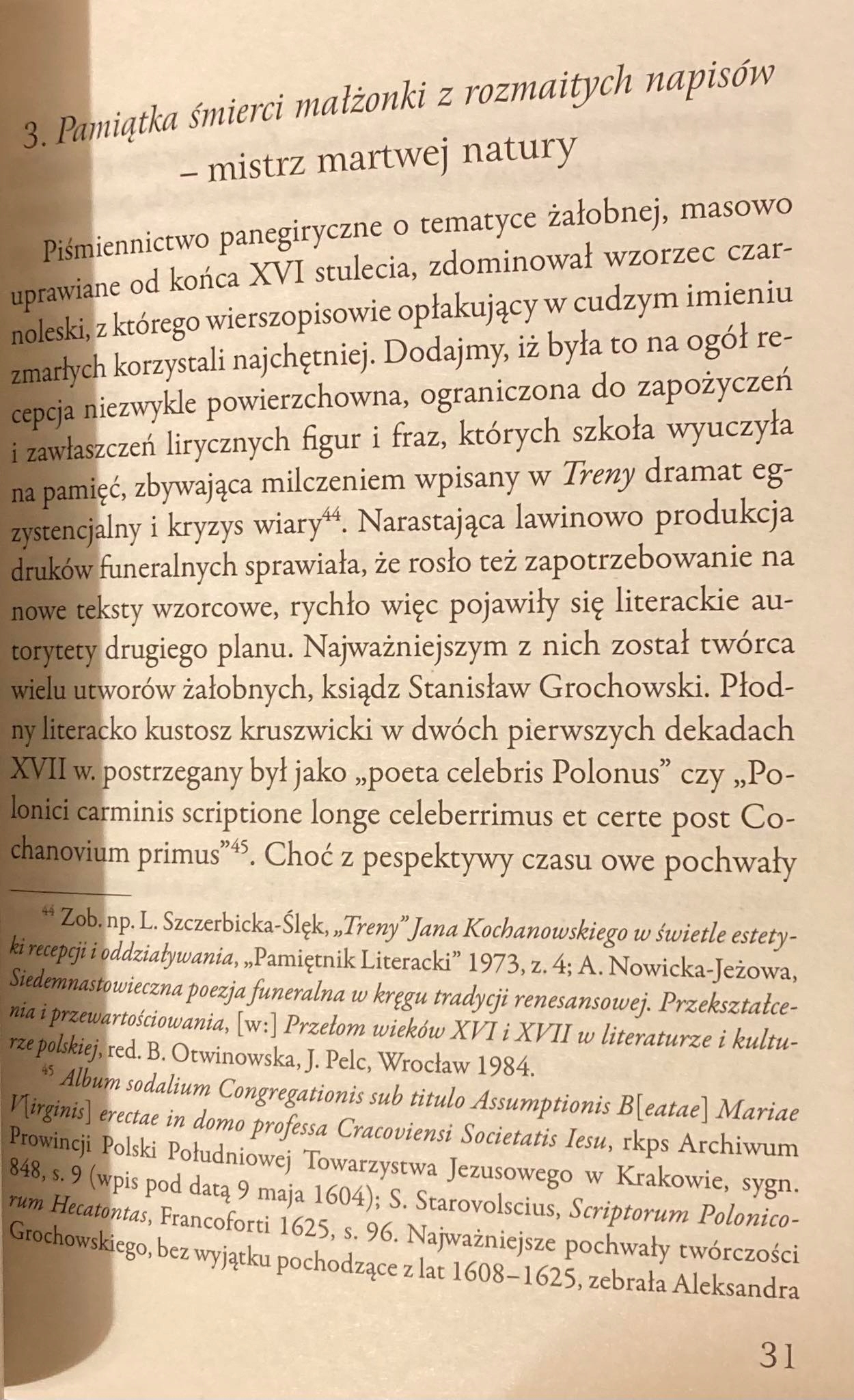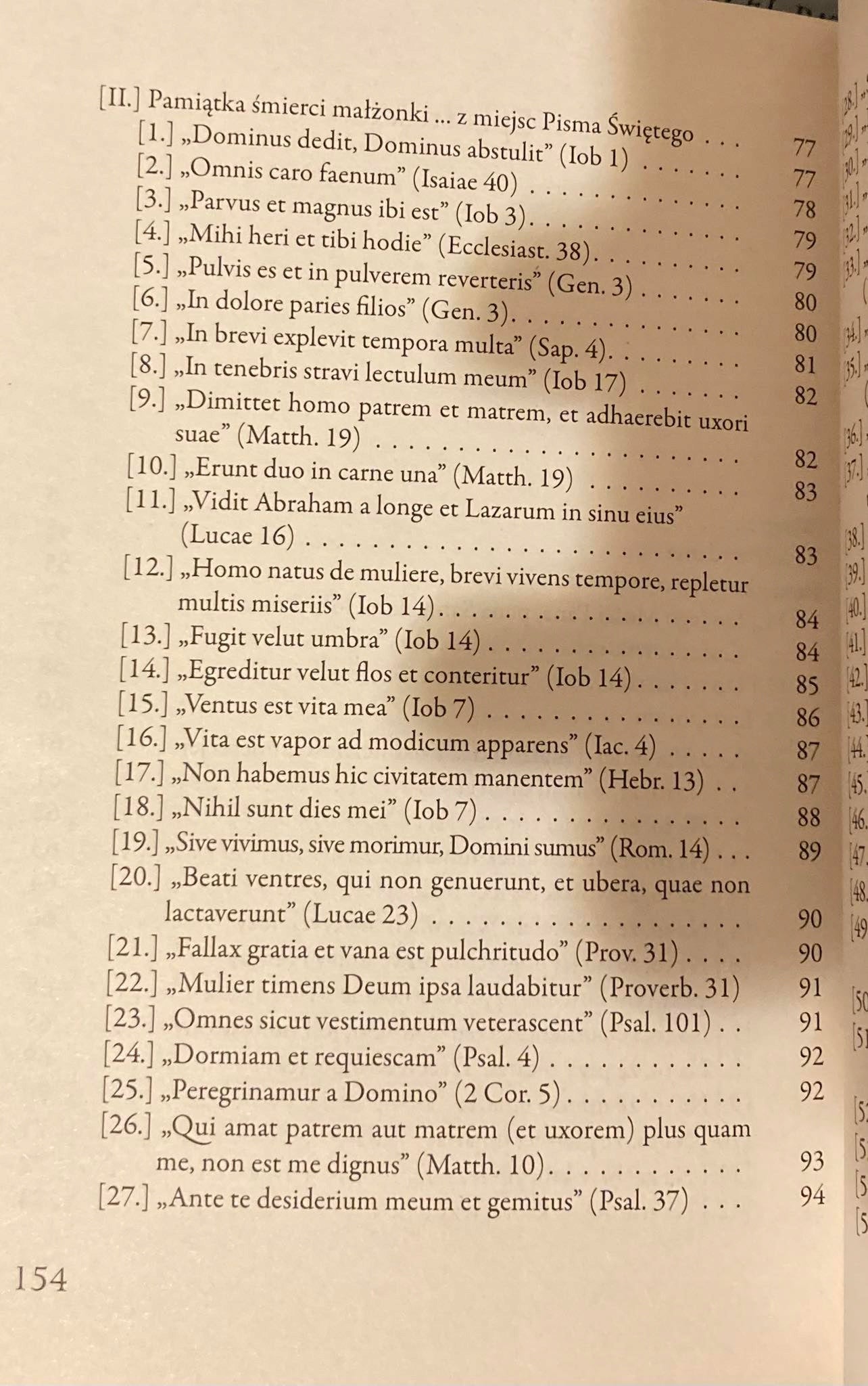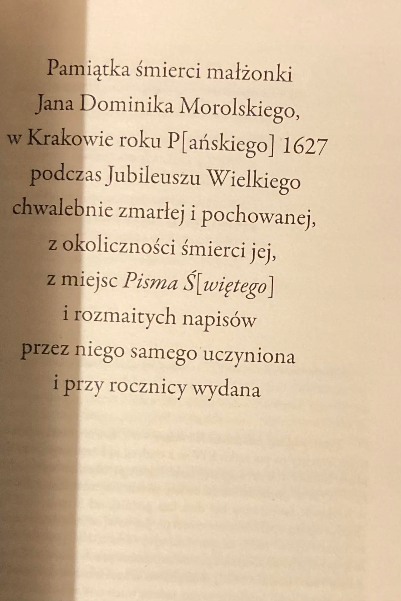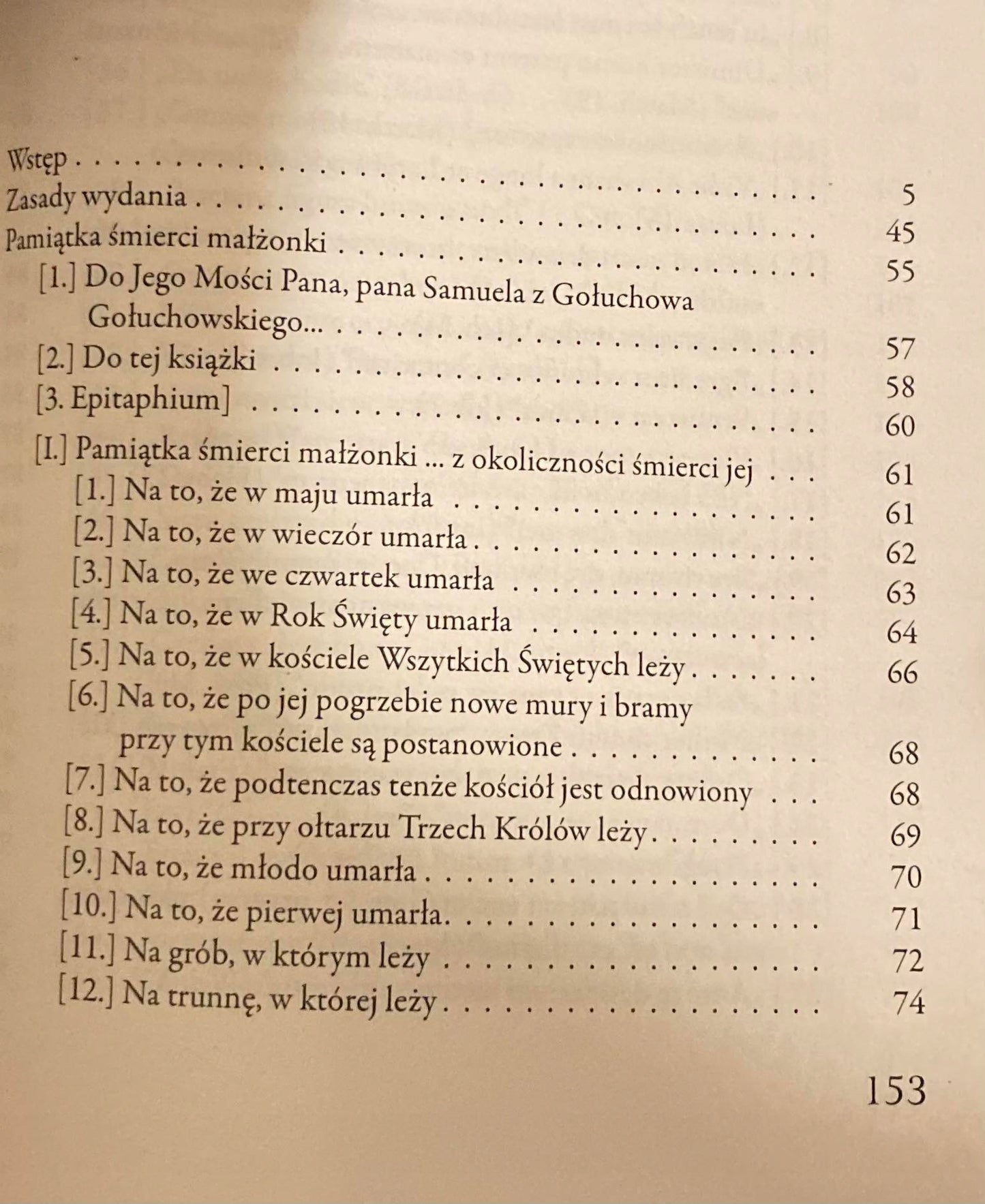 Pamiątka śmierci małżonki z 1628 roku to wyjątkowy druk funeralny, w którym zebrane utwory stanowią prawdziwą perełkę barokowego geniuszu poetyckiego. Księga składa się z trzech tematycznych części, z których niemal wszystkie utwory to epigramaty, prezentujące mistrzostwo barokowej formy literackiej.