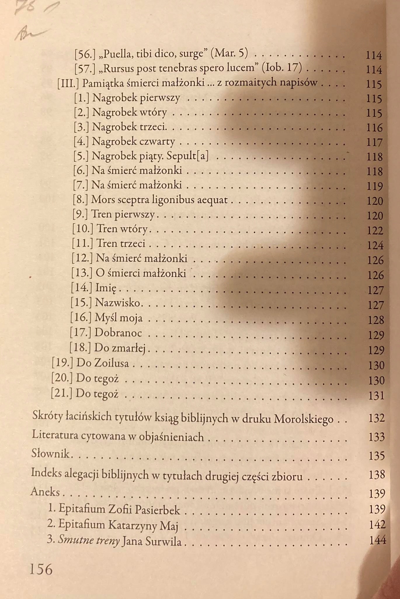Fraszki pierwszej księgi prowadzą czytelnika w poetycką refleksję nad śmiercią i pochówkiem piętnastoletniej Zofii Morolskiej. Druga część zawiera epigramaty, które głęboko penetrują biblijne definicje ludzkiej egzystencji, podważając wartość życia. Ostatnia księga to zbiór epitafiów i trenów poświęconych przedwczesnie zmarłej, stanowiący sentymentalny hołd dla jej pamięci.
