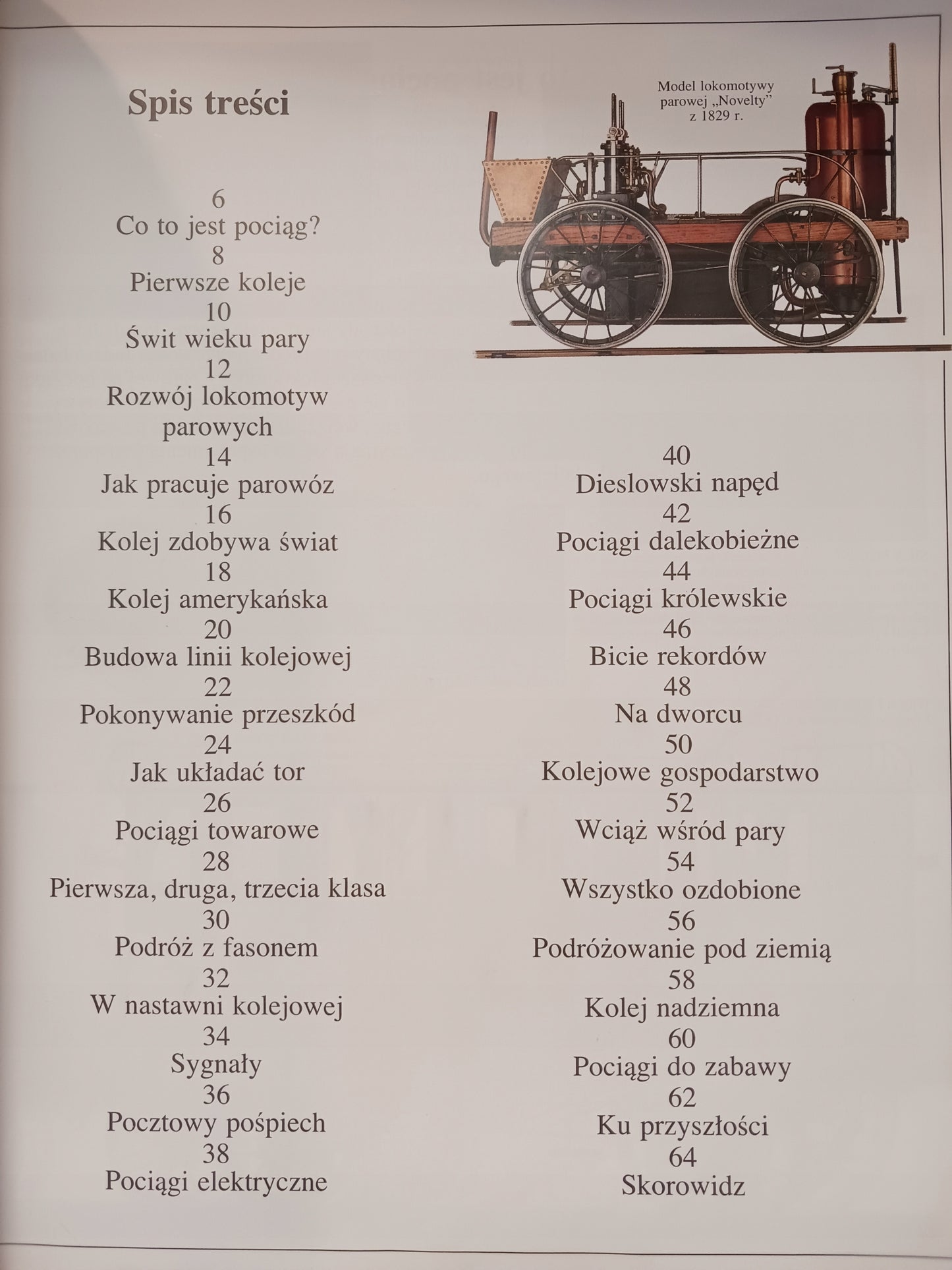 W książce przedstawiono w oryginalny i fascynujący sposób świat kolei. Doskonałe, kolorowe fotografie i rysunki pokazują lokomotywy parowe, spalinowe i elektryczne, wagony towarowe i pasażerskie, silniki, sygnały kolejowe - rozwijając przed naszymi oczami barwną historię rozwoju kolei.