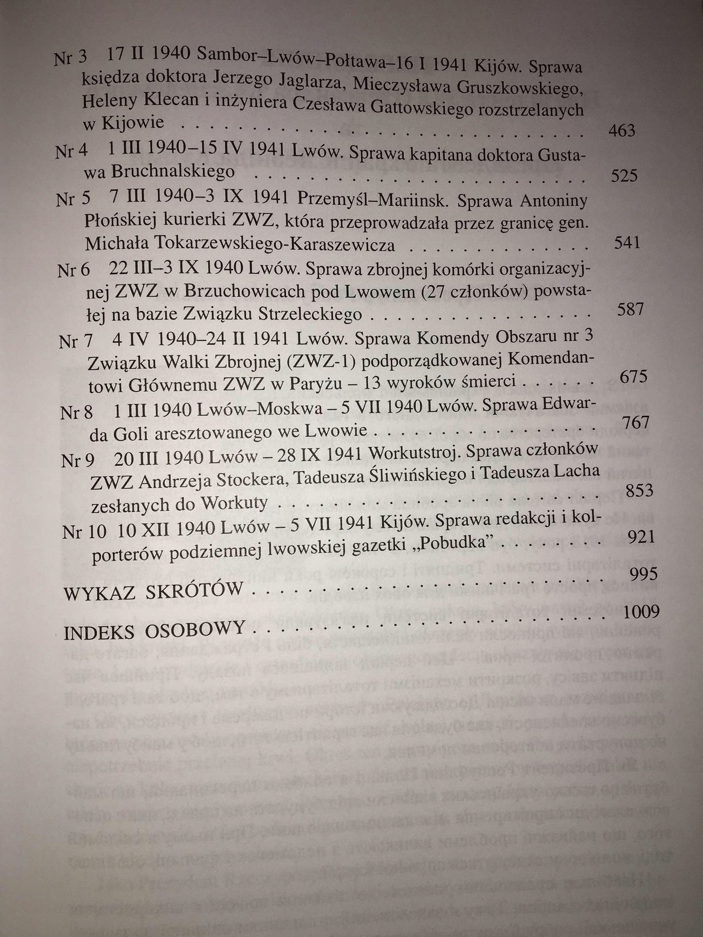 Tom 1 pt. „Polskie podziemie 1939–1941 – Lwów, Kołomyja, Stryj, Złoczów” zawiera 10 akt spraw prowadzonych przeciwko polskim patriotom przez organy NKWD (m. in. sprawa gen. Mariusza Zaruskiego, Beaty Obertyńskiej, sprawa Komendy Obszaru ZWZ Lwów i in.)