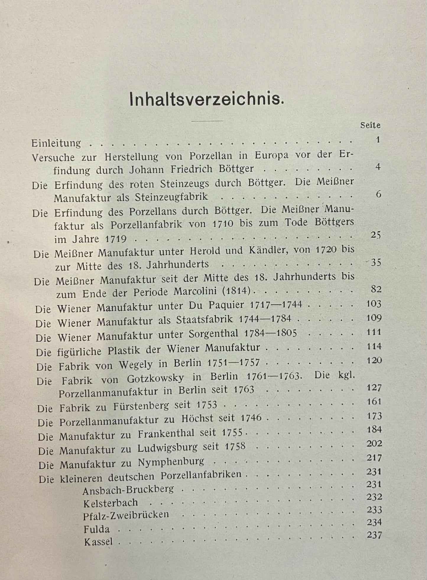 Niemieckojęzyczna publikacja poświęcona historii i rozwojowi produkcji porcelany w najważniejszych manufakturach Europy XVIII stulecia. Autor omawia techniki wytwarzania, style dekoracyjne oraz charakterystyczne cechy poszczególnych ośrodków, takich jak Miśnia, Wiedeń, Berlin czy Sèvres.