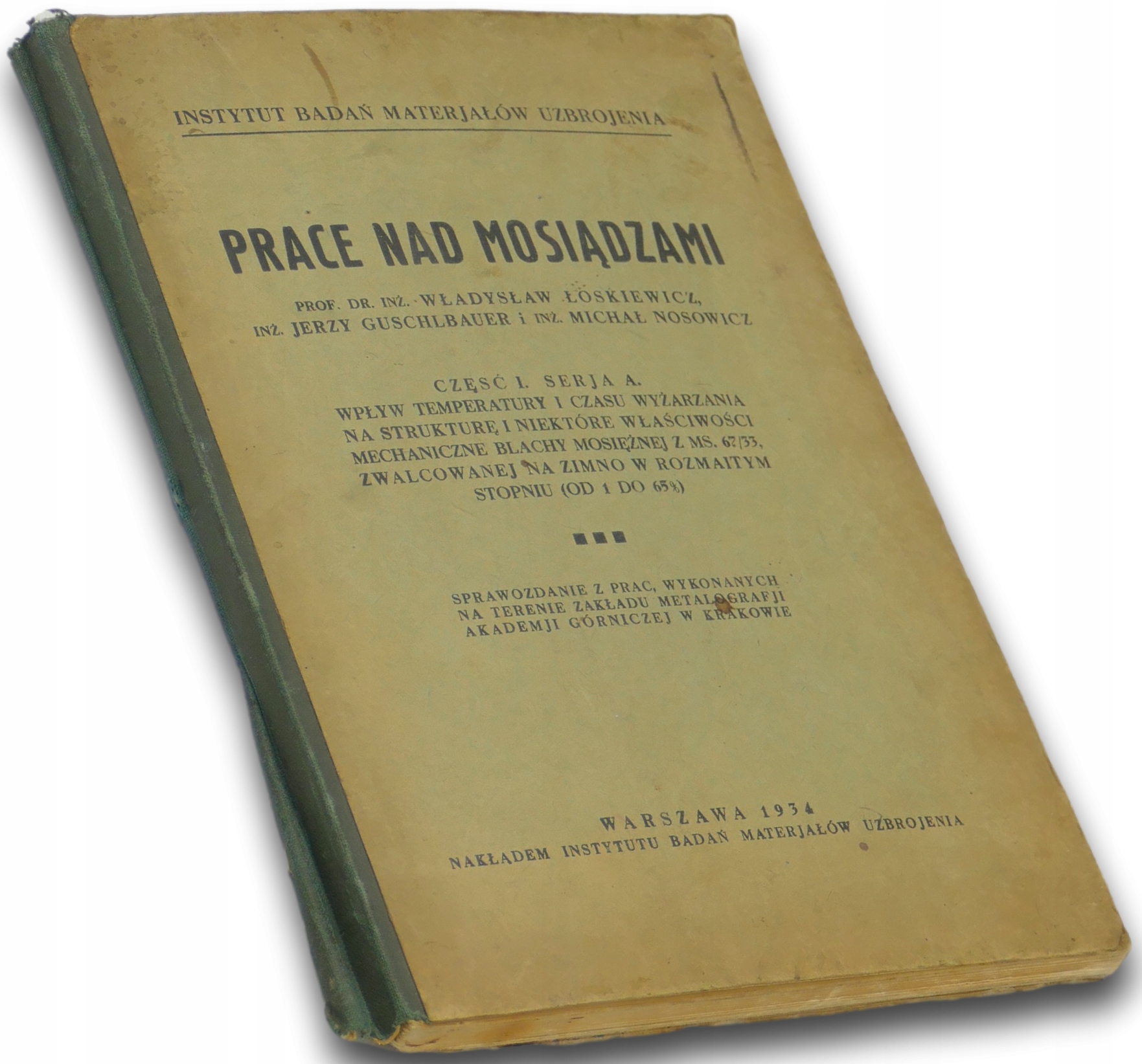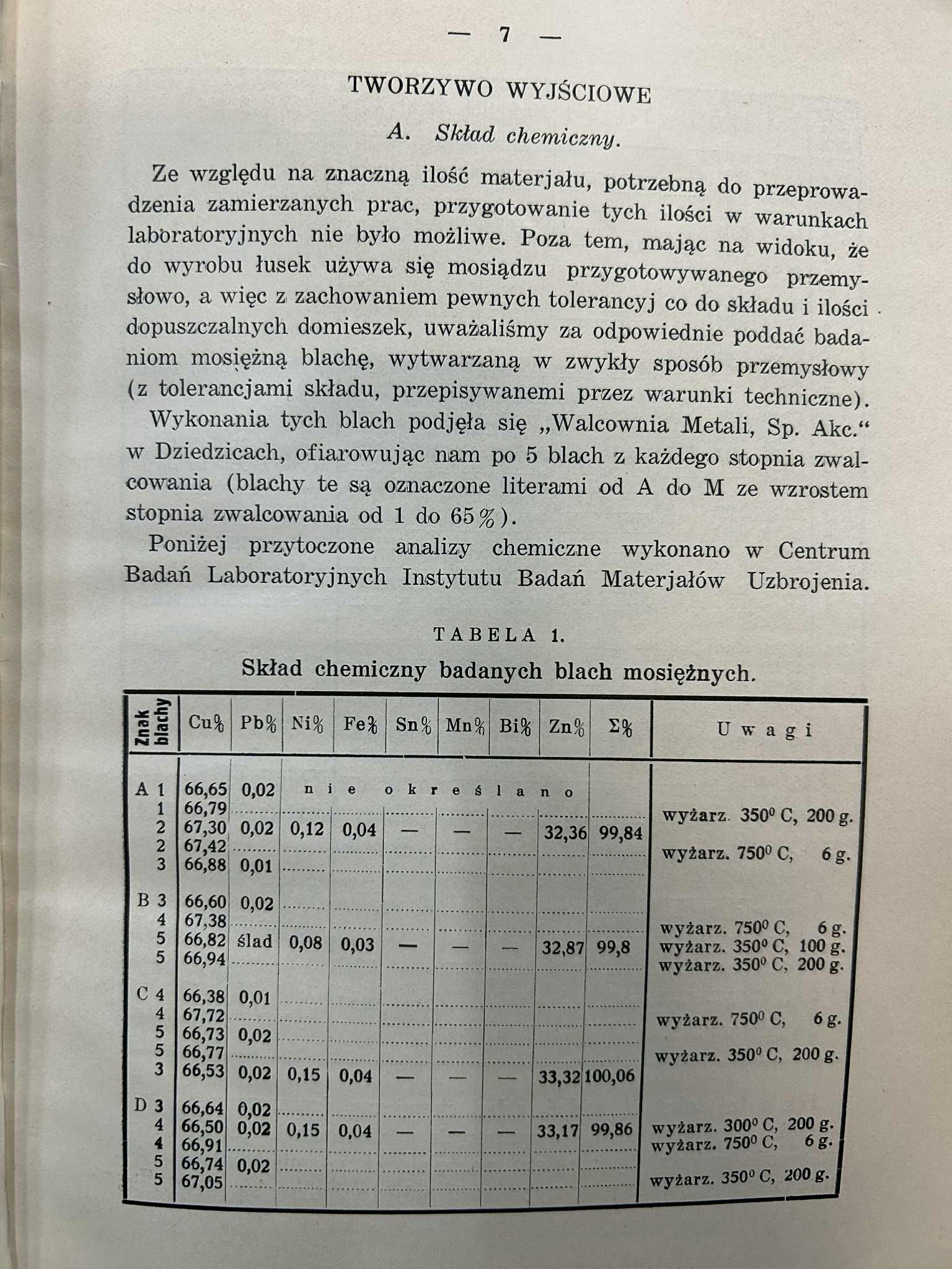 Tytuł: Prace nad mosiądzami Część I Serja A: Wpływ temperatury i czasu wyżarzania na strukturę i niektóre właściwości mechaniczne blachy mosiężnej z MS. 67/68 zwalcowanej na zimno w rozmaitym stopniu (od 1 do 65%)