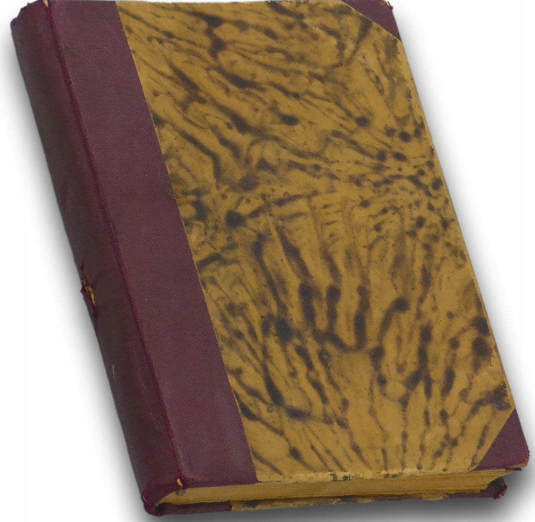 Stan: dobry + / lekkie przetarcia na oprawie / pożółkłe strony / pęknięcie bloku między kilkoma ze stron / delikatne przebarwienia na niektórych ze stron / pieczątka własnościowa i zapiski ołówkiem na tylnej wyklejce / lekko przykurzone górne obcięcie kart