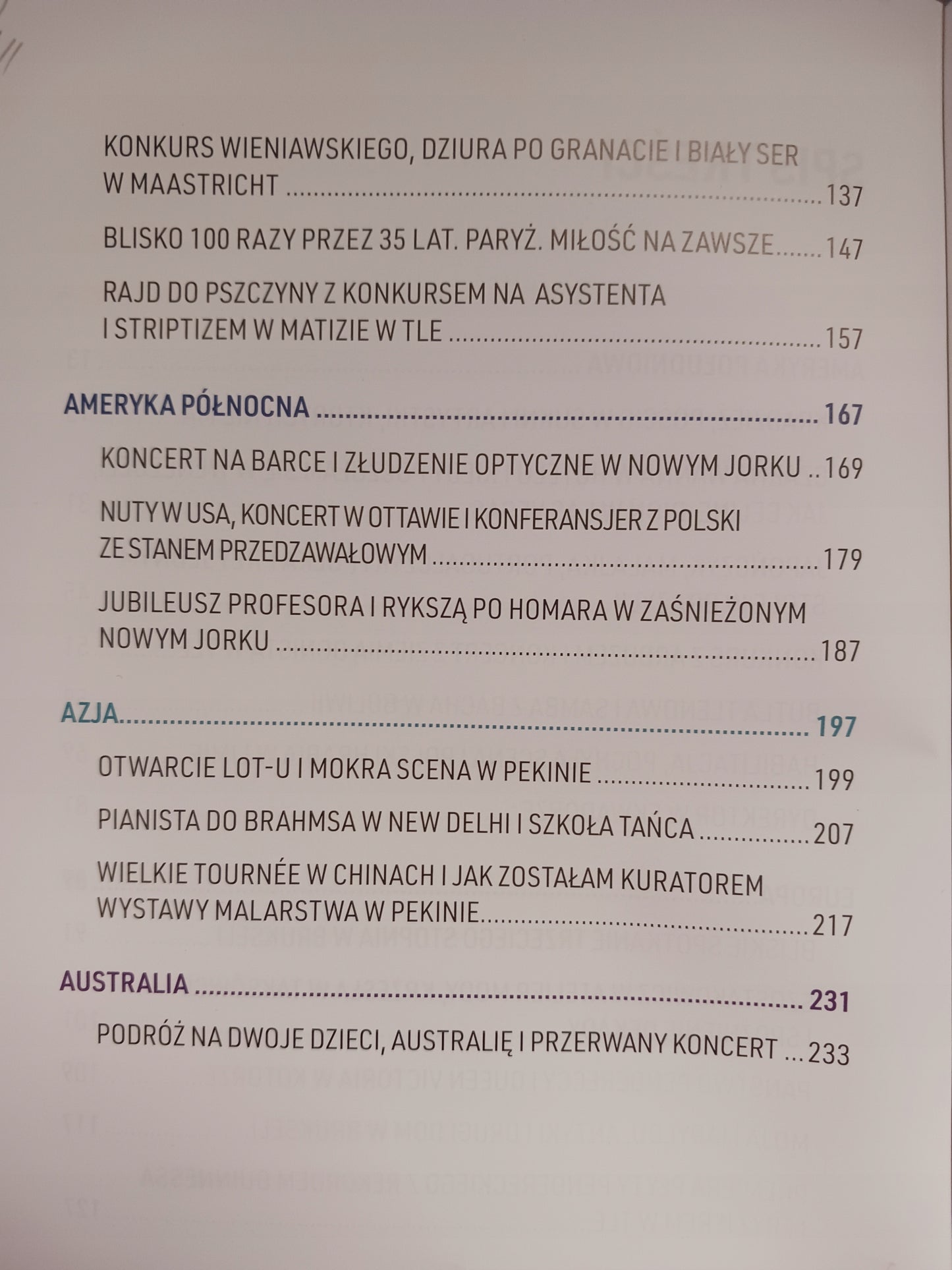 Patrycja Piekutowska, znakomita skrzypaczka-solistka, która od ponad 25 lat koncertuje na 5 kontynentach, ma również dar pisania. Do tej pory jednak absolutnie niesamowite historie, które przytrafiały jej się pod każdą szerokością geograficzną opowiadała głównie przyjaciołom i znajomym lub podczas niektórych koncertów. Jednak po trudnym wypadku pod koniec ubiegłego roku, w wyniku którego złamała w sześciu miejscach nogę, postanowiła przelać swoje wspomnienia na papier.