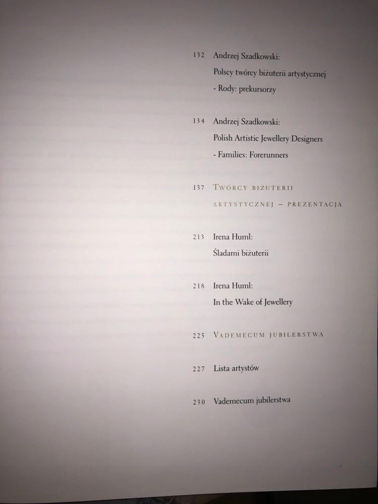 Album na wysokim poziomie edytorskim obejmujący zarówno historię jak i współczesność biżuterii. Powstał dzięki wysiłkowi i zbiorom łódzkiego małżeństwa jubilerów – Anny i Arkadiusza Majsterków, właścicieli Galerii Sztuki Jubilerskiej. Ich kolekcja posłużyła za podstawę opracowania, a fotografie Tadeusza Karpińskiego dopełniły całości. Uzupełnieniem są teksty prezentujące historię biżuterii oraz sylwetki jej polskich twórców, wśród których odrębny rozdział poświęcono Franciszkowi Starowieyskiemu. Autorzy prezentują dzieła piękne, choć nie zawsze drogie, a przy tym nie stronią od pokazania rozwiązań śmiałych, wykonanych z „materiałów różnych”, co oznacza czasem plastik lub inne bardzo zwyczajne tworzywa. Z pewnością wielką zasługą twórców albumu jest zebranie w jednym tomie dorobku polskich jubilerów i projektantów, szczególnie z lat nam współczesnych i przedstawienie niedocenionej powszechnie dziedziny sztuki użytkowej, dziedziny ponadczasowej, gdyż biżuteria jest tak stara jak sztuka i od zawsze towarzyszy człowiekowi, o czym świadczy również rozdział „Śladami biżuterii” pióra prof. Ireny Huml poświęcony „stanowi posiadania muzeów polskich w zakresie zbiorów biżuterii i dzieł sztuki jubilerskiej”. - Rynek Książki