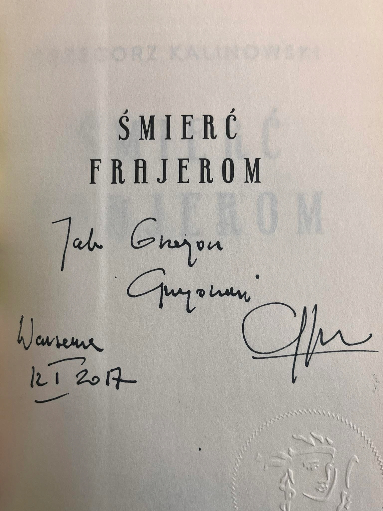 Pozycja "Śmierć frajerom" opatrzona dedykacją autora!