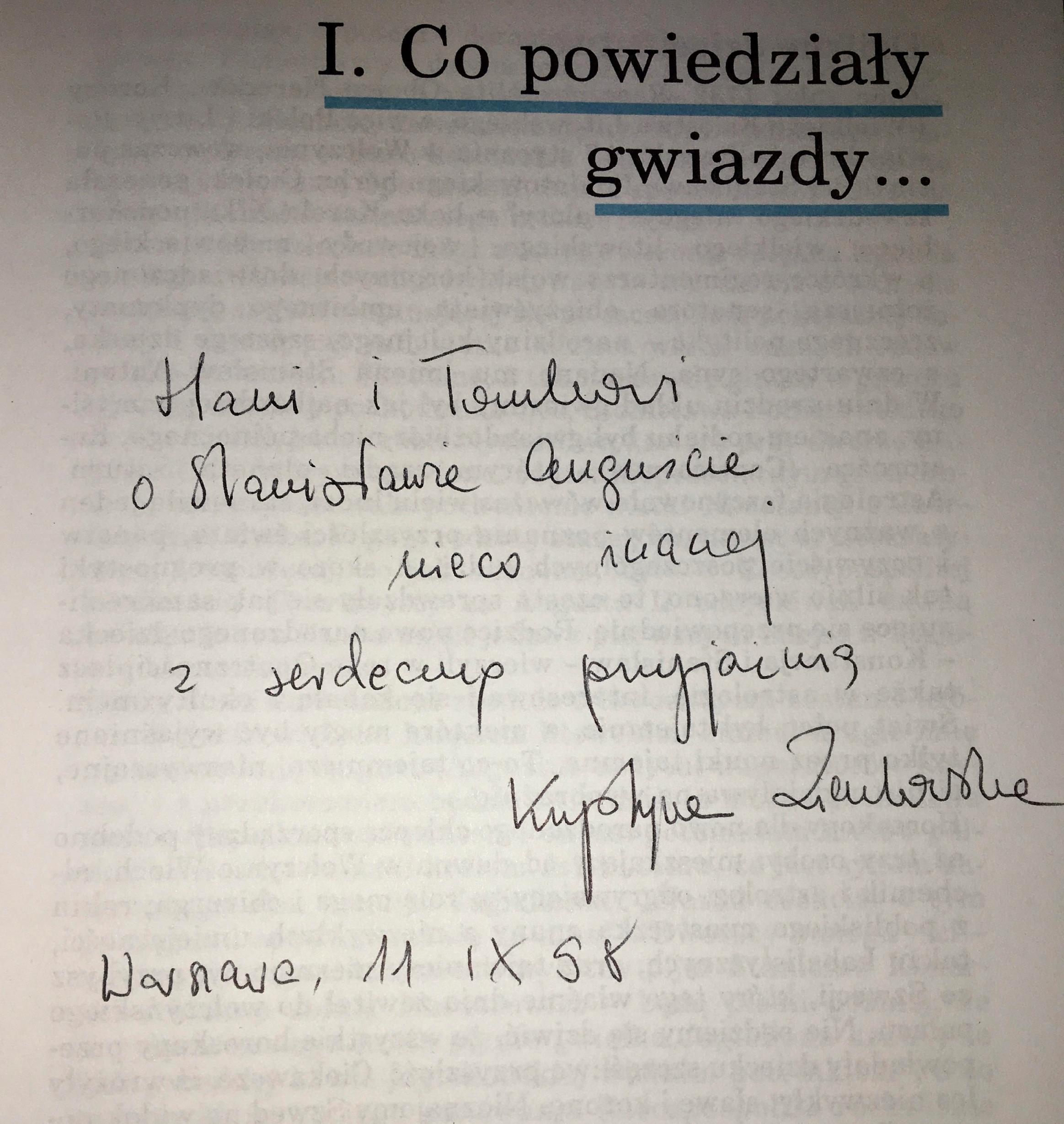 Książka jest opatrzona dedykacją Autorki dla wybitnego historyka Tomasza Szaroty.