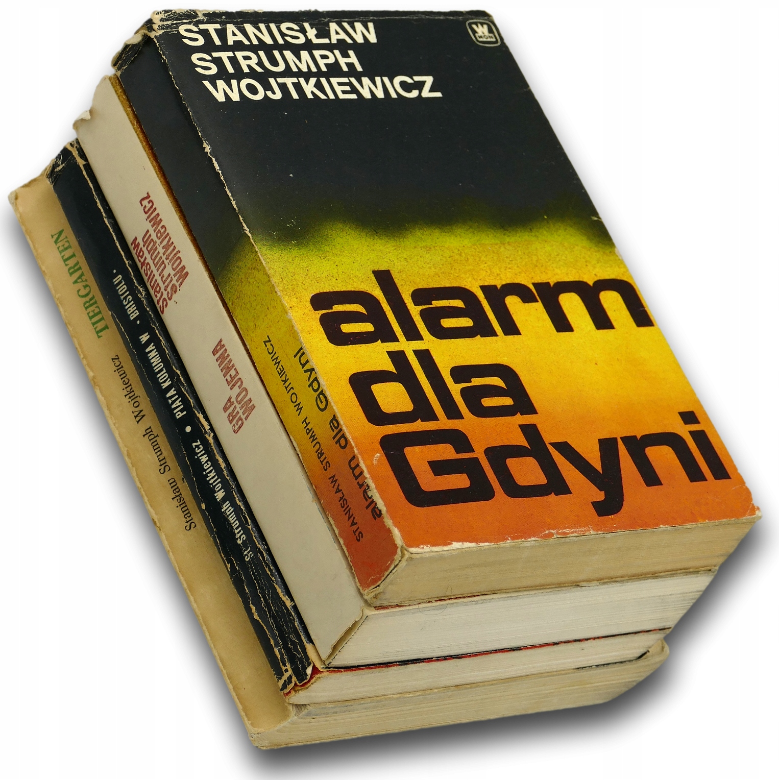 Stan: bardzo dobry-, lekko przybrudzone i porysowane oprawy, drobne wgniecenia, wystrzępienia i wytarcia na krawędziach opraw, delikatnie pożółkłe strony, przesuniecie grzbietu w tomie „Tiergarten”