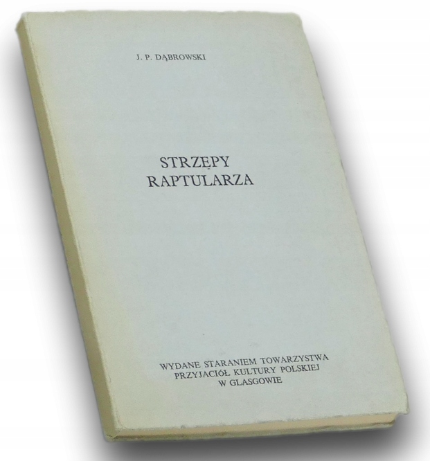 „Strzępy raptularza” autorstwa J. P. Dąbrowskiego to osobista i refleksyjna publikacja wydana w 1968 roku przez Towarzystwo Przyjaciół Kultury Polskiej w Glasgow. Książka ma charakter zapisków pamiętnikarskich – tytułowy „raptularz” odnosi się do dawnych notatników czy dzienników, w których spisywano codzienne wydarzenia, myśli i obserwacje.