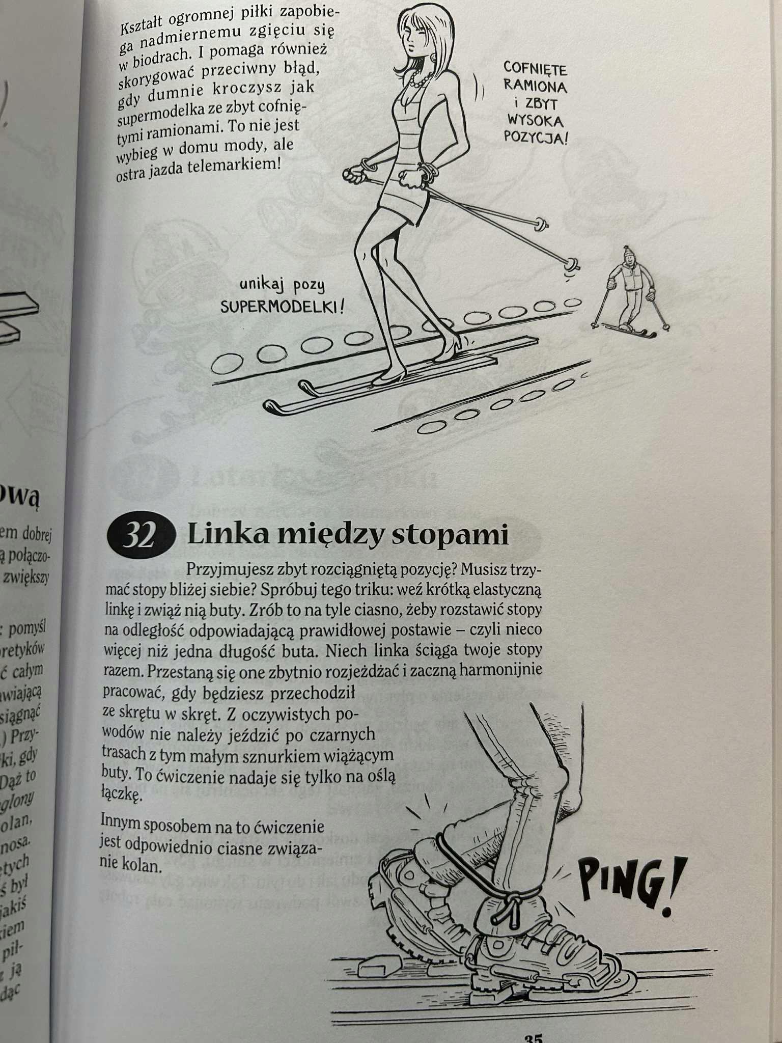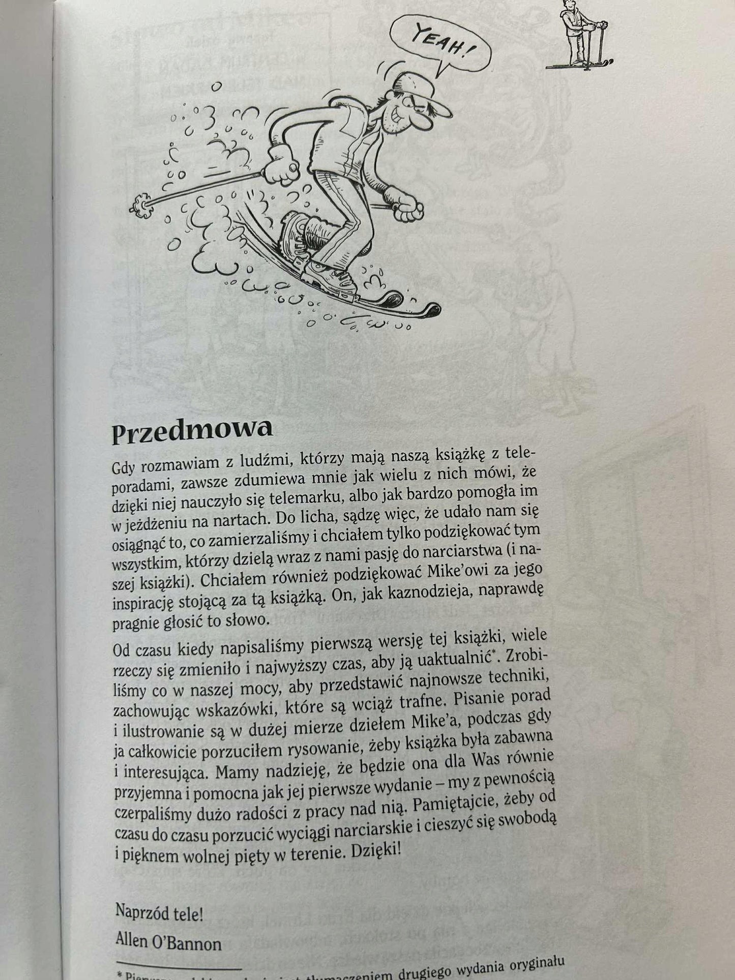 Autorski duet w kolejnej odsłonie – instruktorów jazdy telemarkiem. Używając barwnego języka i dowcipnych rysunków (niezawodny Mike!), uczą najważniejszych elementów tego malowniczego stylu, przy czym jest to luźny zbiór porad, z których każdy może wybierać w dowolnej kolejności, według potrzeby, własnego poziomu i tempa nauki. Jest to również zaproszenie do jazdy poza przygotowanymi trasami, gdzie można zostawić piękny ślad na dziewiczym śniegu.