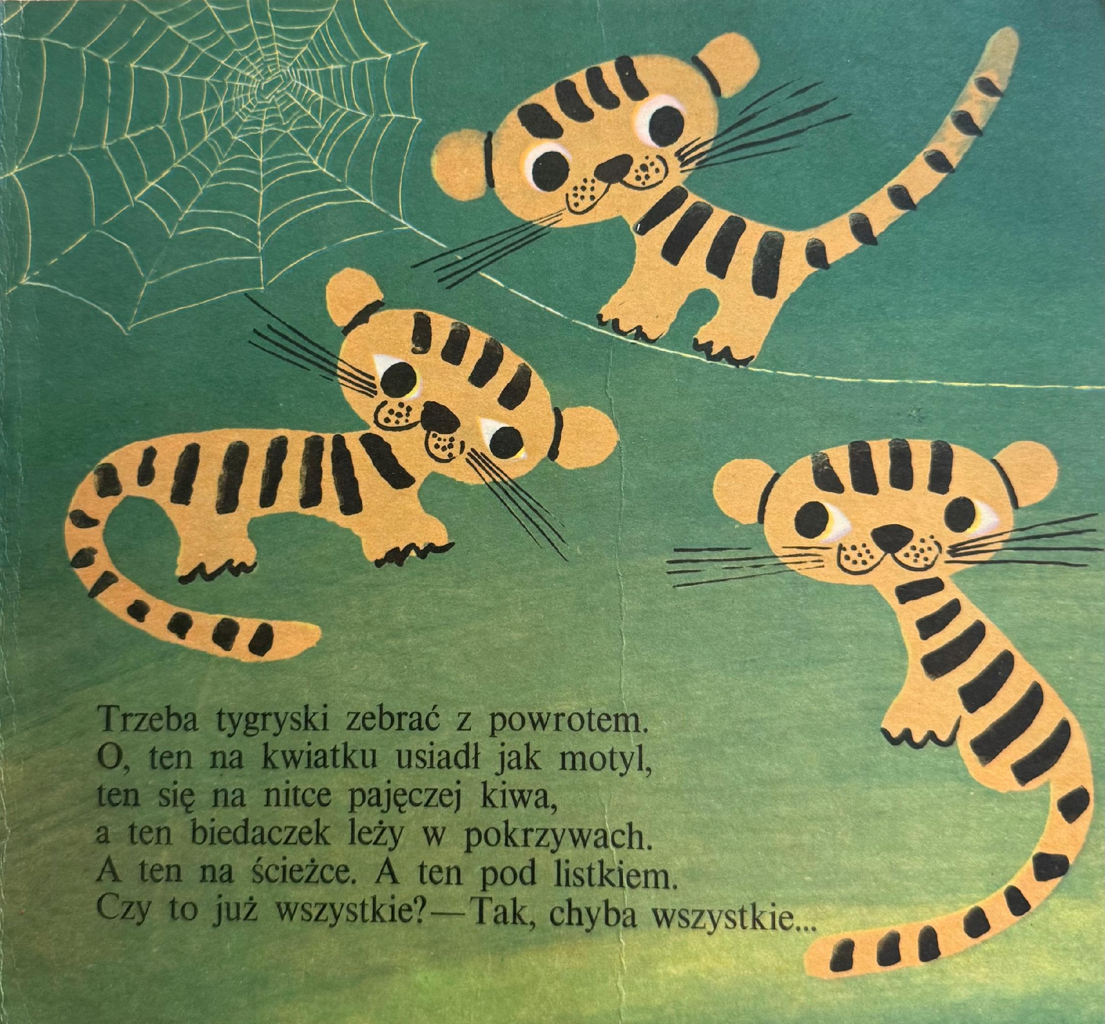 „Tygryski” Joanny Papuzińskiej to ciepła i pełna uroku książka dla dzieci, ilustrowana przez Julittę Karwowską. Wydana przez Naszą Księgarnię w 1975 roku (wydanie II) w twardej oprawie.