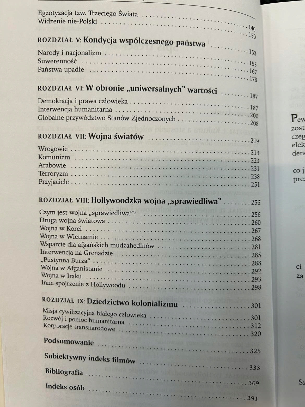 Oglądanie filmów wyzwala w nas duże emocje. W jednych większe, w innych mniejsze, ale zawsze nam one towarzyszą. Wiemy, że jest to fikcja, ale fikcja naśladująca rzeczywistość. Nie zawsze jesteśmy w stanie oddzielić obie te kwestie. Jak wielu widzów jest w stanie wykazać się znawstwem w przypadku filmów poruszających tematykę powiązaną ze stosunkami międzynarodowymi? Jak definiowana jest w prawie międzynarodowym suwerenność państwa? Czy prawa człowieka mają charakter uniwersalny? Czy demokracja jest rzeczywiście tym, czego pragną wszystkie społeczeństwa na świecie? Czy gdy na ekranie telewizora widzimy film o Afryce, to przedstawia on Czarny Ląd, czy tylko pewne wyobrażenie na jego temat, jakie w swoim umyśle przechowuje twórca tej produkcji? Na te pytania autor stara się odpowiedzieć, analizując produkcje dominującej w świecie północnoamerykańskiej kinematografii. Oczywiście stwierdzenie, że filmy prezentują jakąś subiektywną wizję świata, nie jest tezą odkrywczą i niniejsza praca wcale nie chce jej udowadniać. Autor spogląda na świat przez pryzmat Hollywoodu, analizując jak on wygląda z owej dominującej perspektywy. Skoro wie, że jest to świat wykreowany, to zadaje pytania: Jak? Po co? Dlaczego?