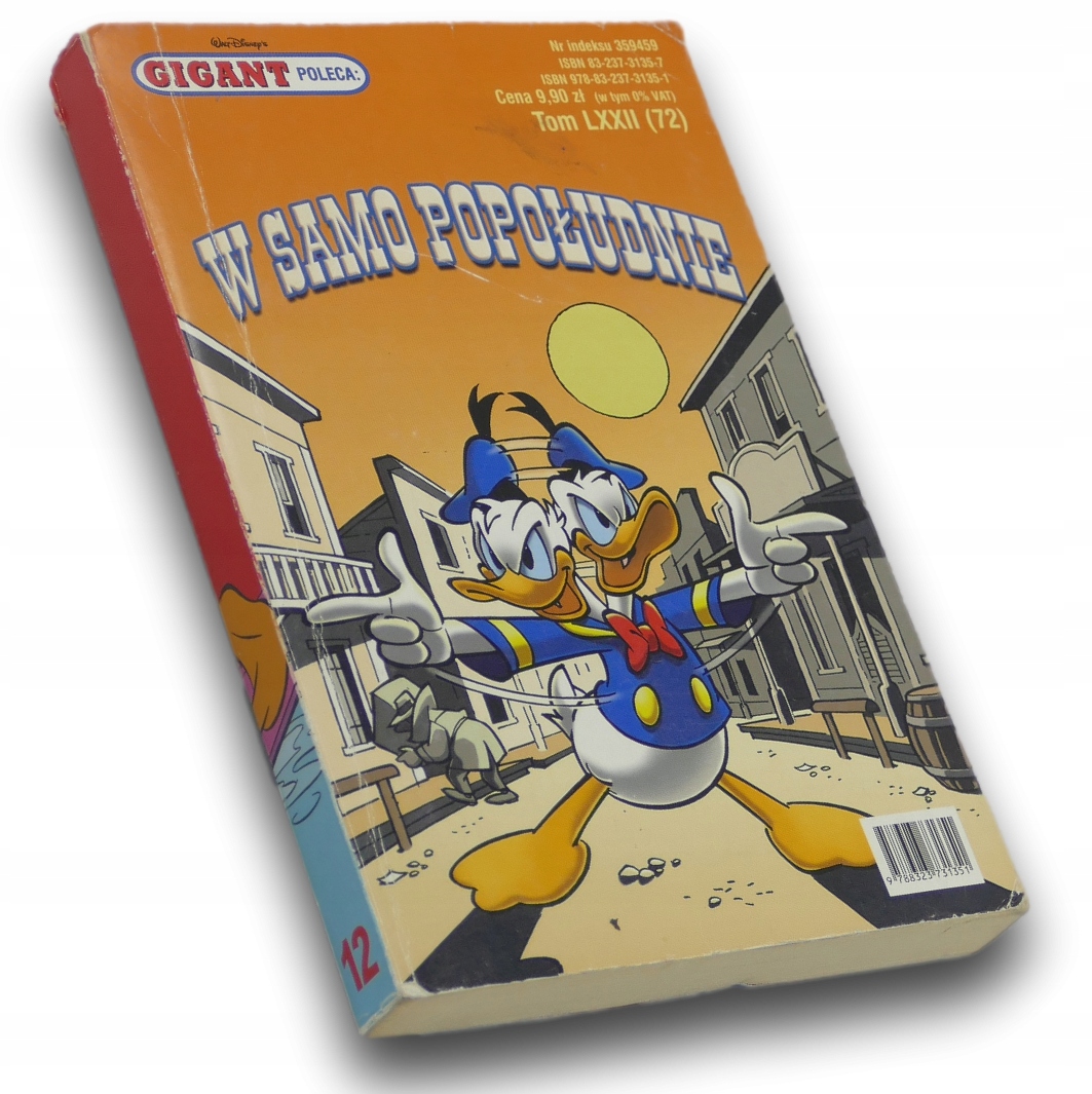 „W samo południe” to 72. tom serii komiksowej Gigant Poleca, zawierający zbiór przygodowych historii z udziałem bohaterów Disneya, takich jak Kaczor Donald, Myszka Miki, Wujek Sknerus czy Bracia Be. Komiksy osadzone są w różnych sceneriach – od Dzikiego Zachodu po miejskie zagadki – i łączą wartką akcję z charakterystycznym humorem. Tom dostarcza klasycznej disneyowskiej rozrywki w formie barwnych, dynamicznych opowieści dla czytelników w każdym wieku.