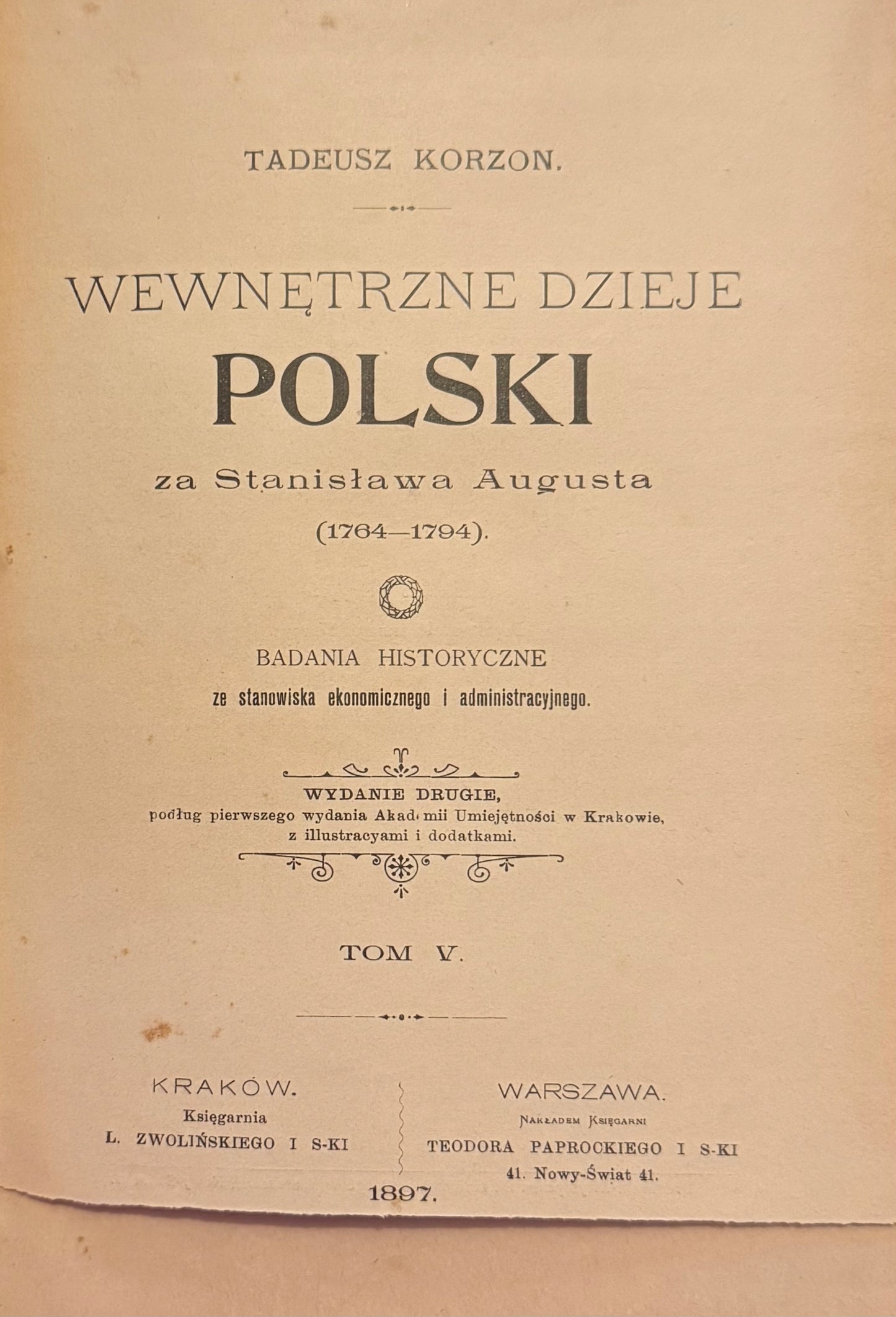 Tytuł: Wewnętrzne dzieje Polski za Stanisława Augusta (1764-1794) Badania historyczne ze stanowiska ekonomicznego i administracyjnego Tom V