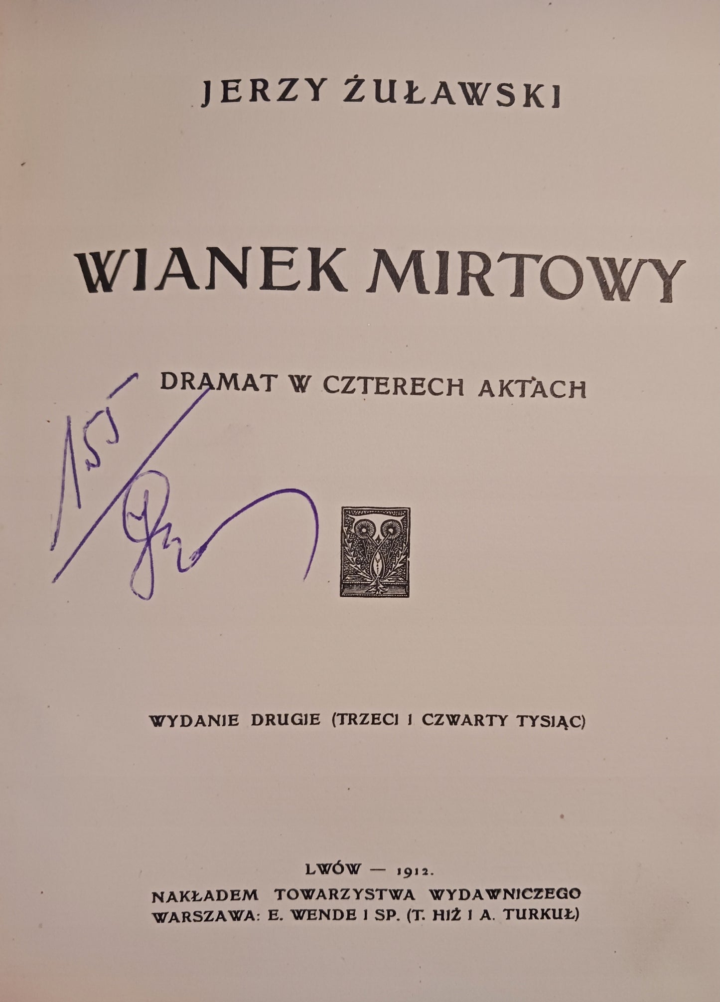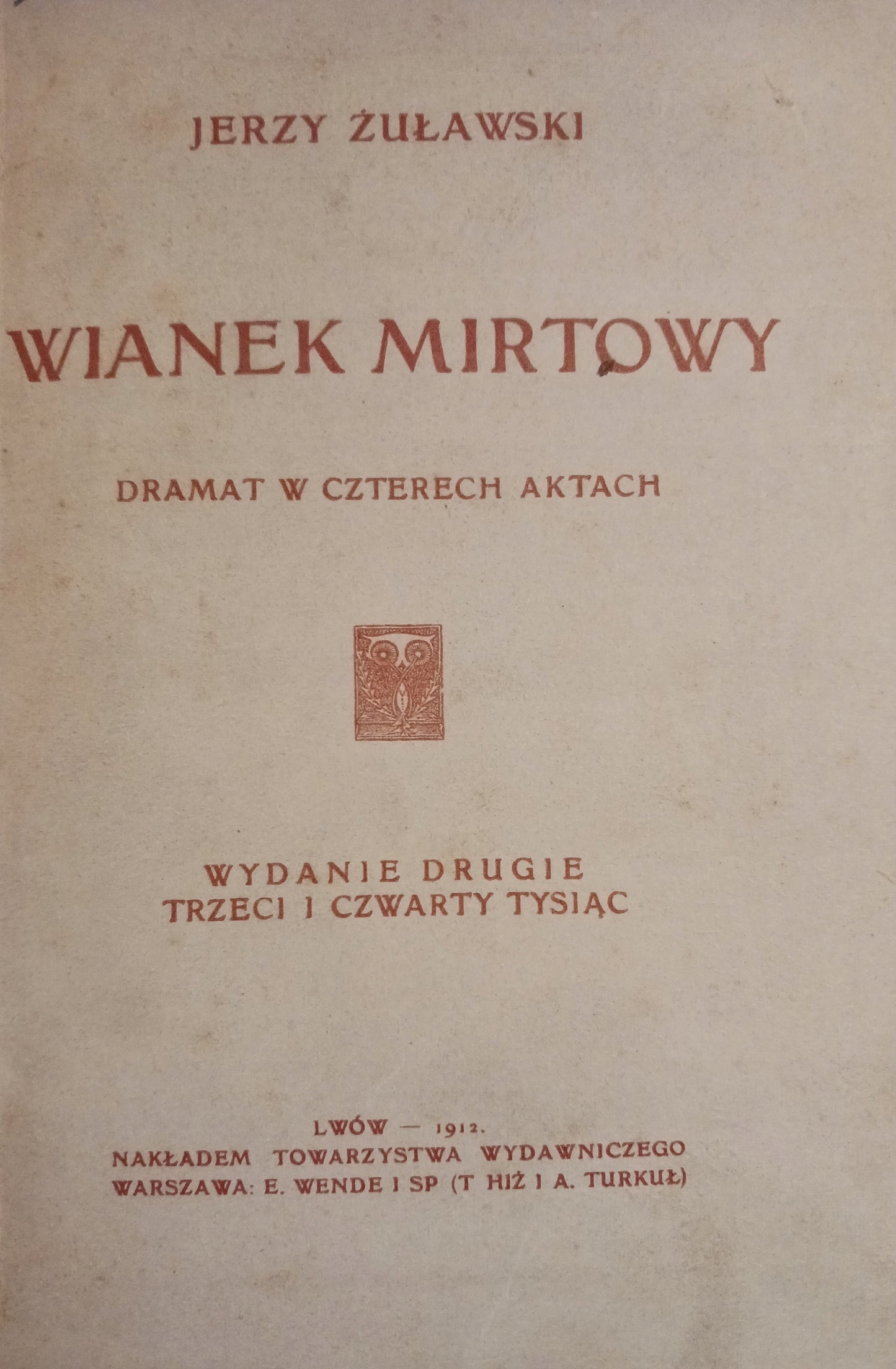 Tytuł: Wianek mirtowy. Dramat w czterech aktach