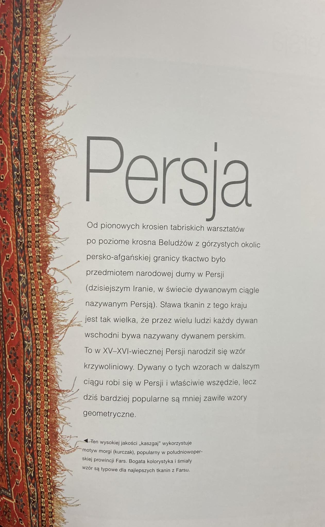 "Pierwsza na polskim rynku tak obszerna i bogato ilustrowana publikacja na temat kobierców. Prezentuje dywany z głównych ośrodków ich produkcji na Kaukazie, w Persji, Turcji, Azji Środkowej, a także Chinach, Ameryce Północnej i Europie. Fachowemu opisowi technik, wzorów i motywów towarzyszy 250 barwnych fotografii. Album zawiera też porady dotyczące tego, jak i gdzie kupować dywany, oraz jak o nie dbać. Idealny dla pasjonatów kobierców i osób poszukujących inspiracji w aranżacji wnętrz."
